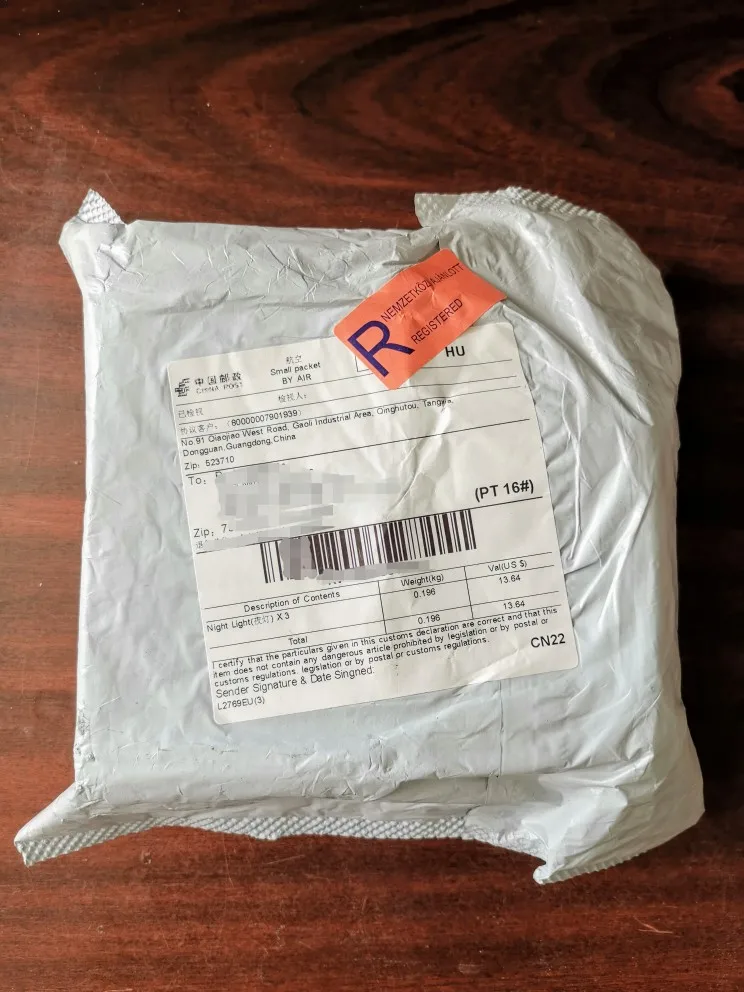 Посылка пришла через 3 недели . Хороший ночник . Срабатывает на движение чётко . Продавцу спасибо .