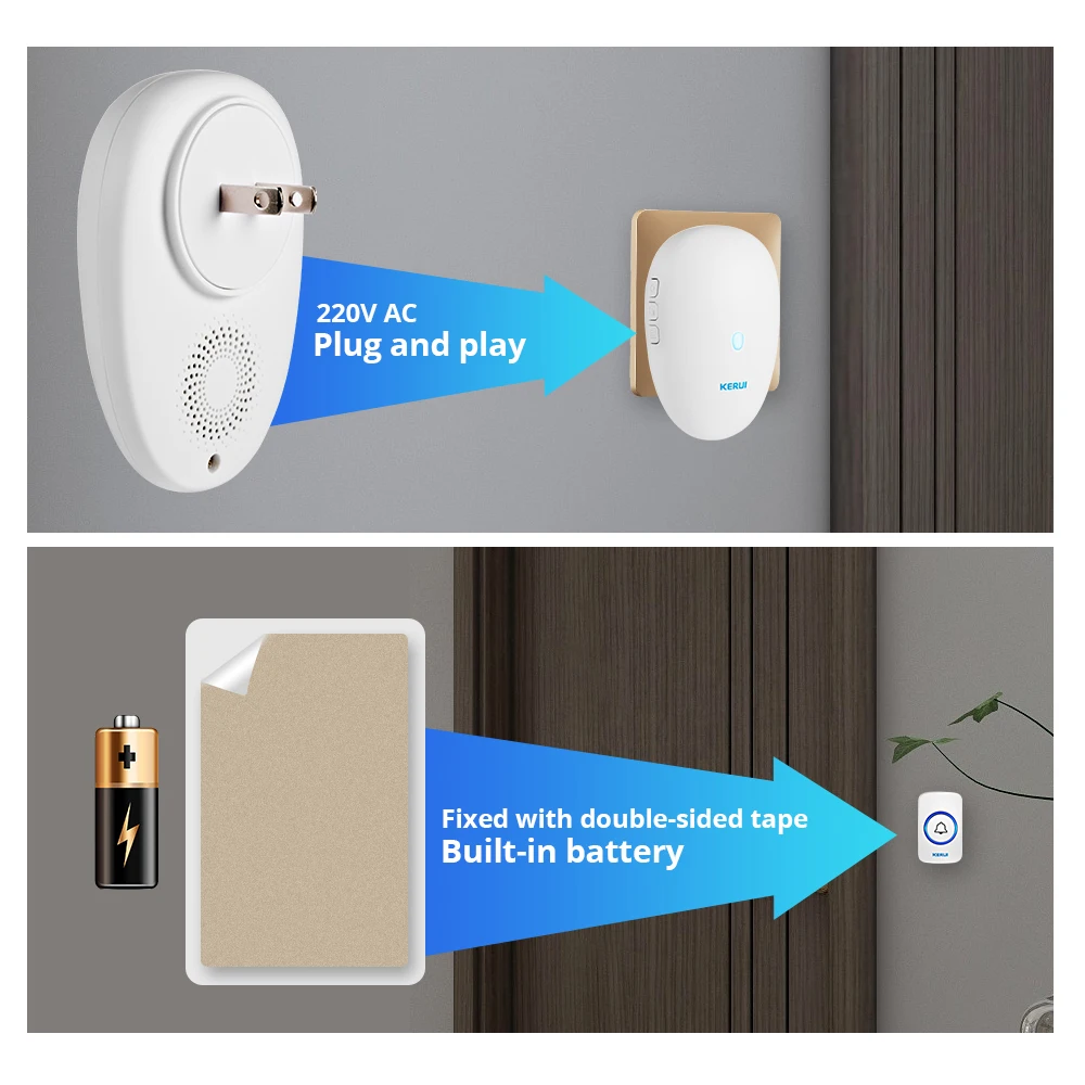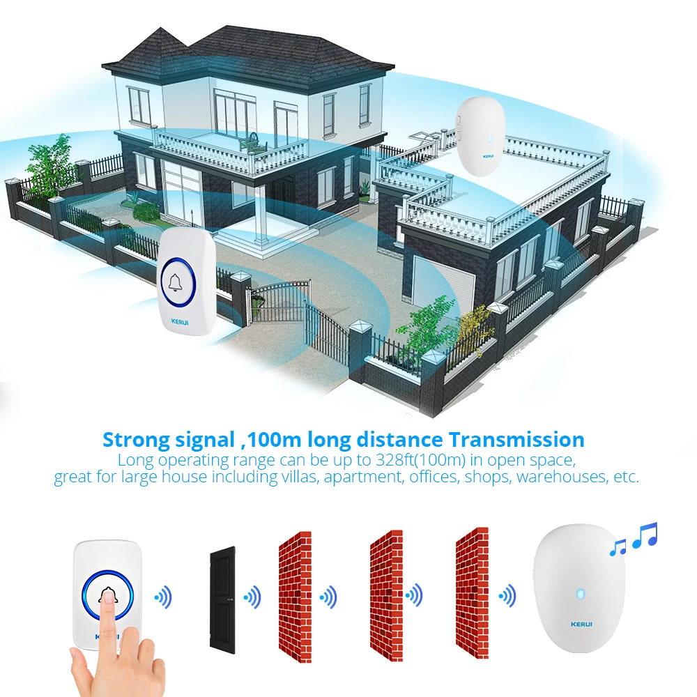 Беспроводной дверной звонок KERUI, водонепроницаемый, со светодиодной подсветильник кой, 32 звонка