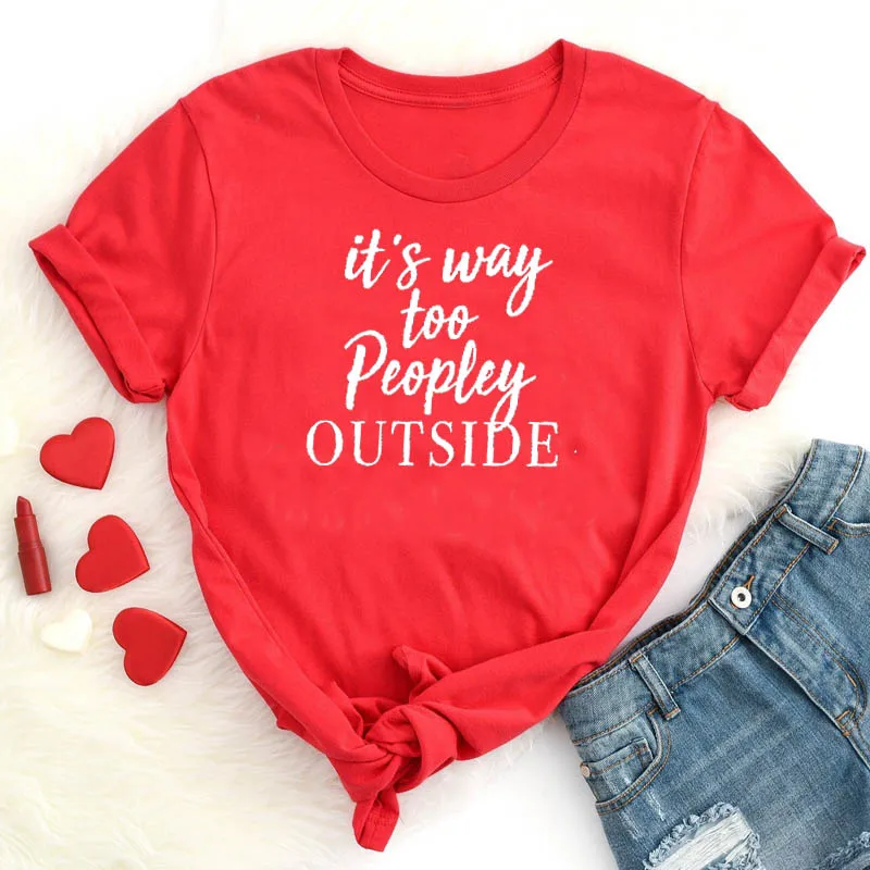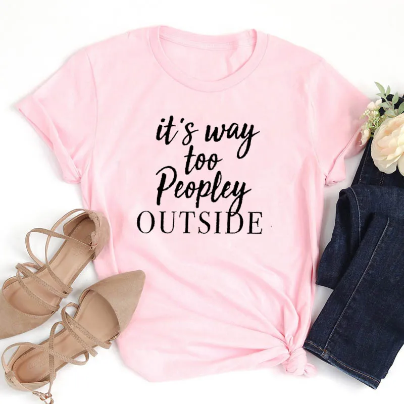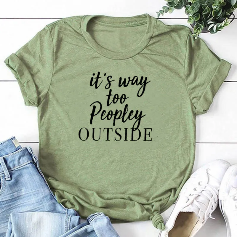 Женская футболка с надписью It's Way Too Peopley, серая хлопковая Повседневная футболка с коротким рукавом и графическим принтом, Прямая поставка