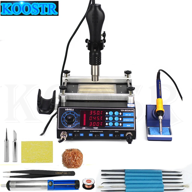 YIHUA 853AAA 3 в 1 Тепловая пушка, станция для распайки инфракрасного Bga, паяльная станция с цифровым дисплеем BGA, подогрев горячего воздуха