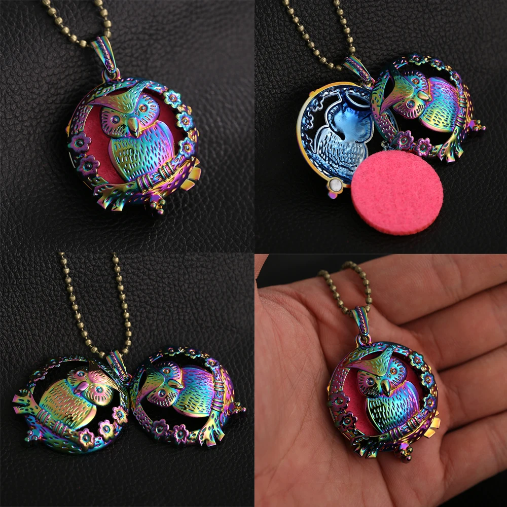 Ароматерапия диффузор ожерелье подвески искусственная Сова античный серебряный цвет бронзовый открытый медальон духи кулон ожерелье
