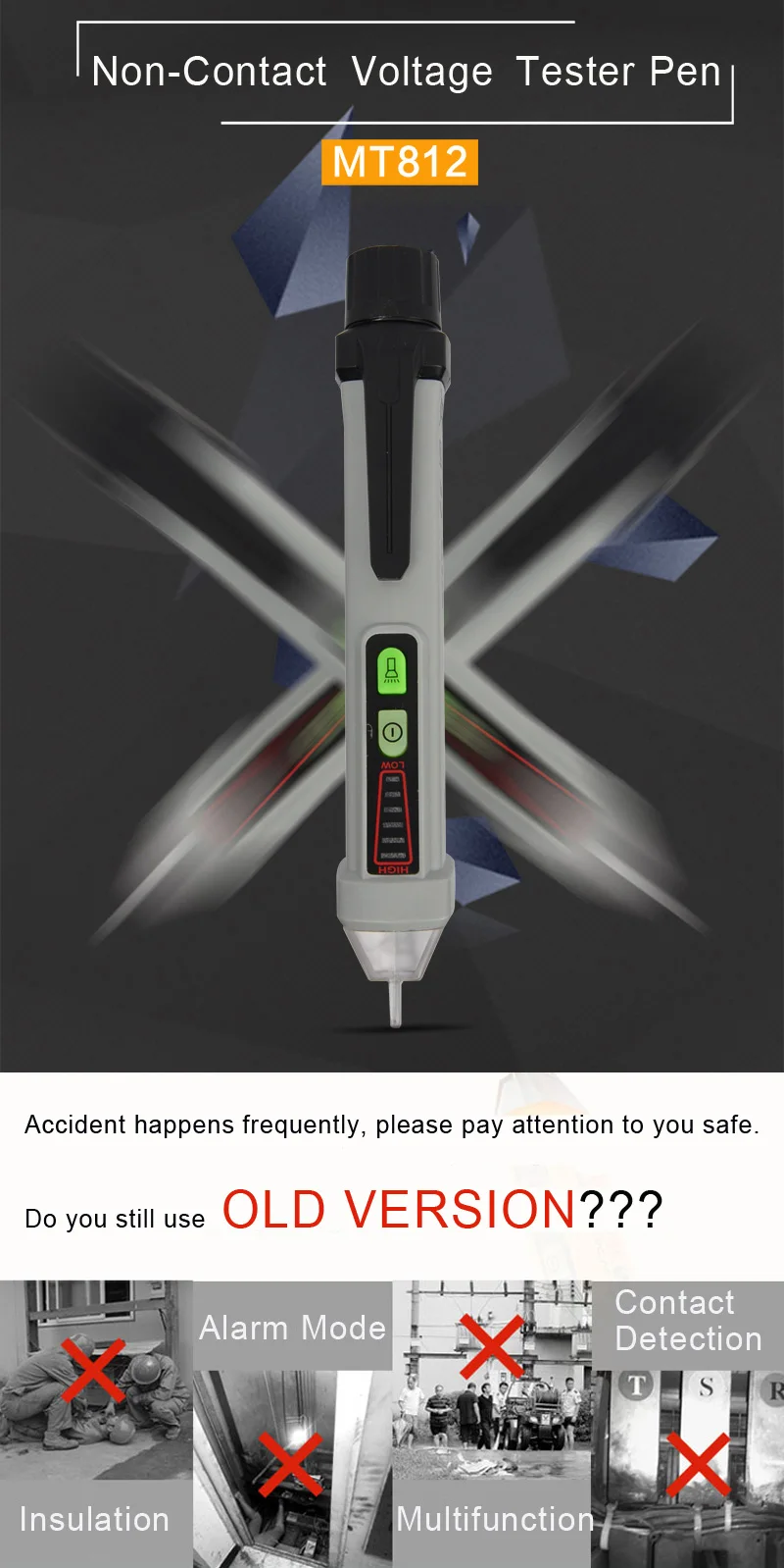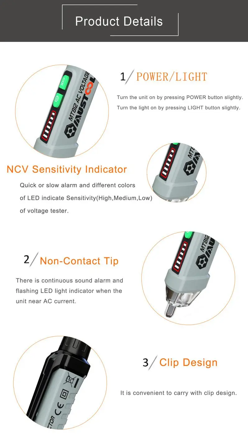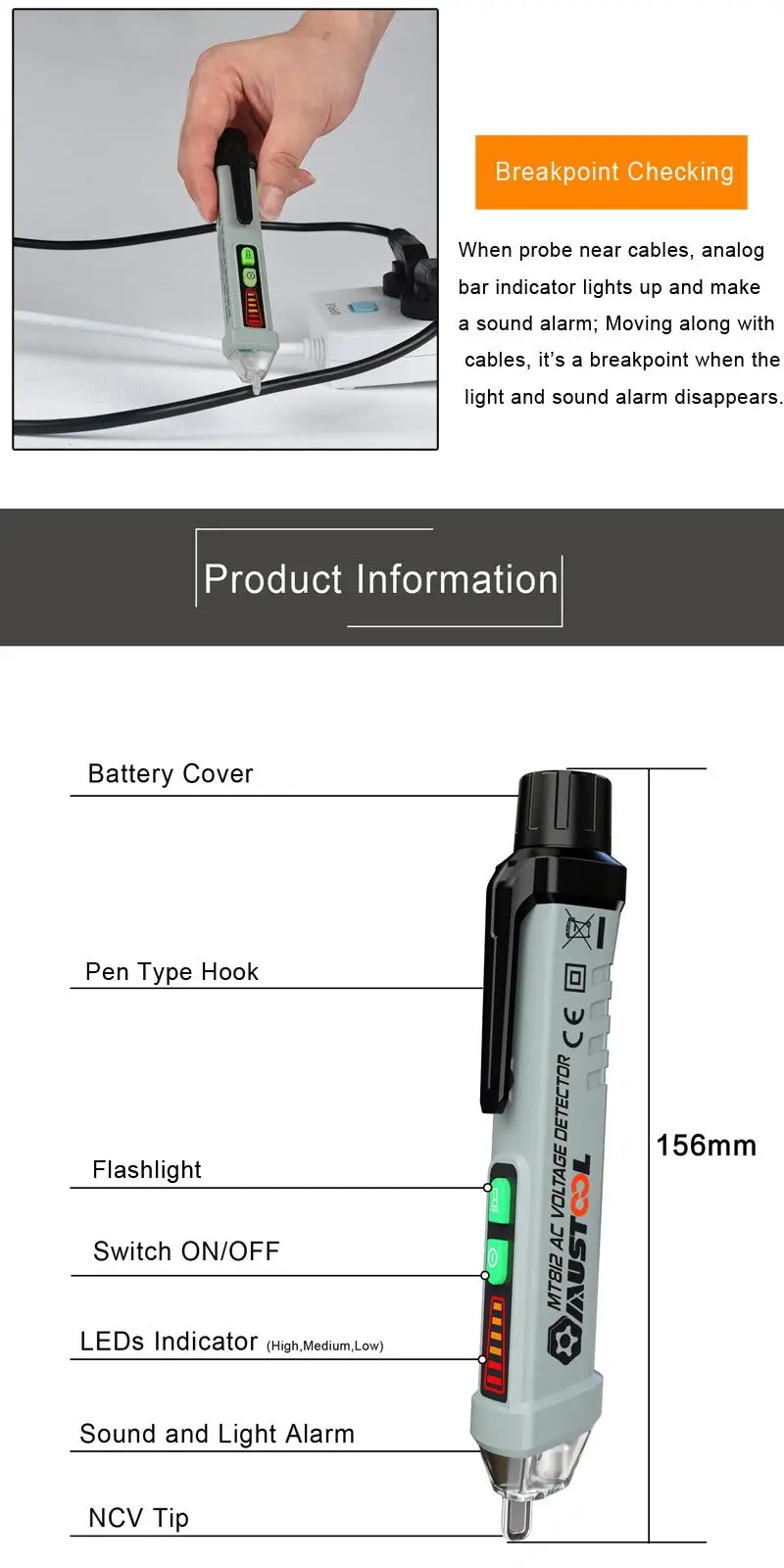 MUSTOOL MT812 Многофункциональный AC 12-1000 В бесконтактный Тестер Напряжения Ручка детектор напряжения светильник и звуковая сигнализация icon star icon star icon star icon star icon star