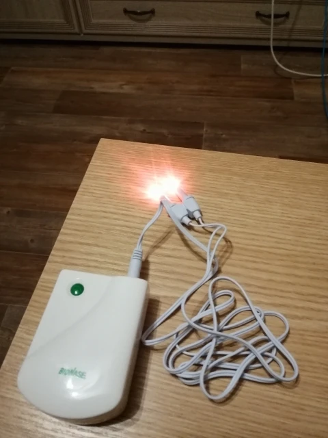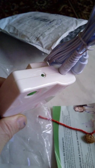 Продавец отправил быстро, упаковано было хорошо и все дошло целым. Девайс прост как три рубля. Одна кнопка включения, работает 15 мин. и отключается. Лампочки горят (весь нос светится :))). Есть ли эффект пока не понятно, если не забуду дополню. PS батарейка крона 9V в комплект не входит.