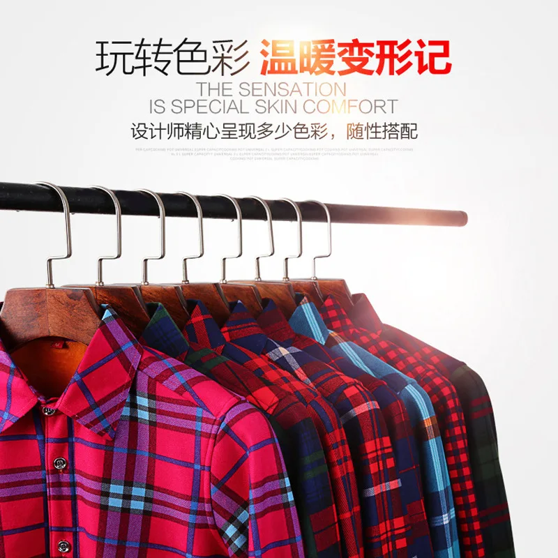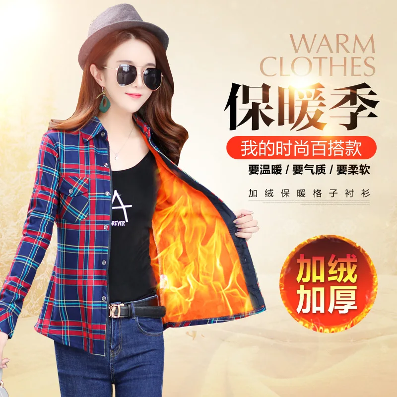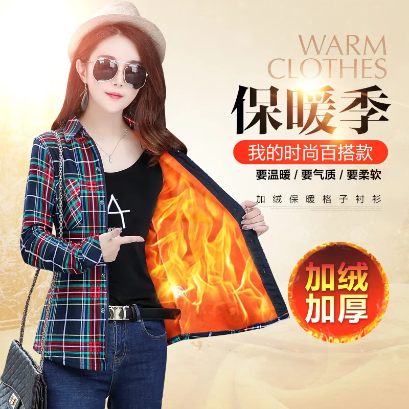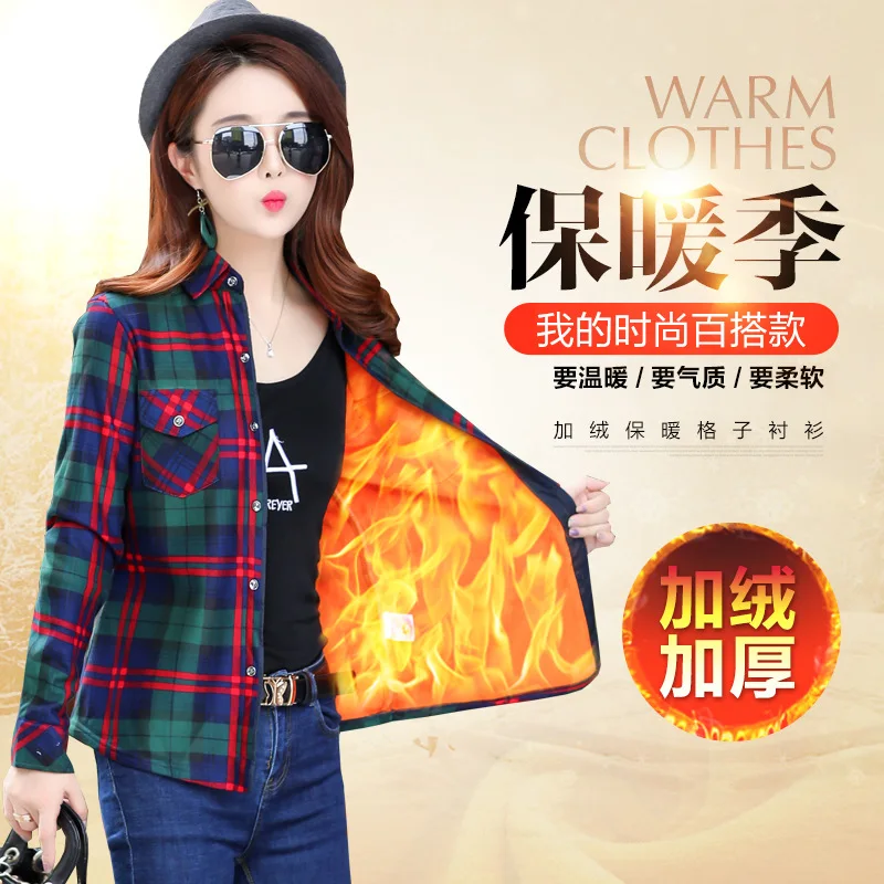 Зимняя женская рубашка, блузка из вельвета, утепленная, в клетку, Женская обтягивающая, размера плюс г., теплый топ, модные блузки, топы