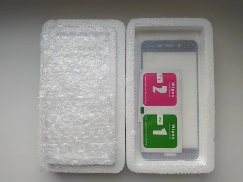 Размер стекла соответствует экрану, даже чуть меньше чем предыдущие стекла, что скорее всего лучше, т.к. до этого стекла ломались именно по краям из-за формы экрана по краям. Комплектность стандартная - стекло и салфеточки.