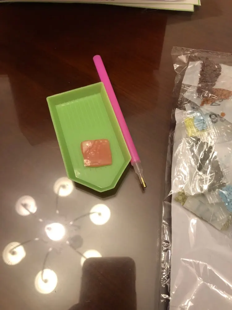 Мы купили две картины с бриллиантами. Цветной алмаз и лист картины в порядке, но не было никаких инструментов для рисования, таких как головка ручки и резиновая прокладка. Без этих двух предметов, мы не можем начать процесс рисования. Можете ли вы отправить заказ как можно скорее