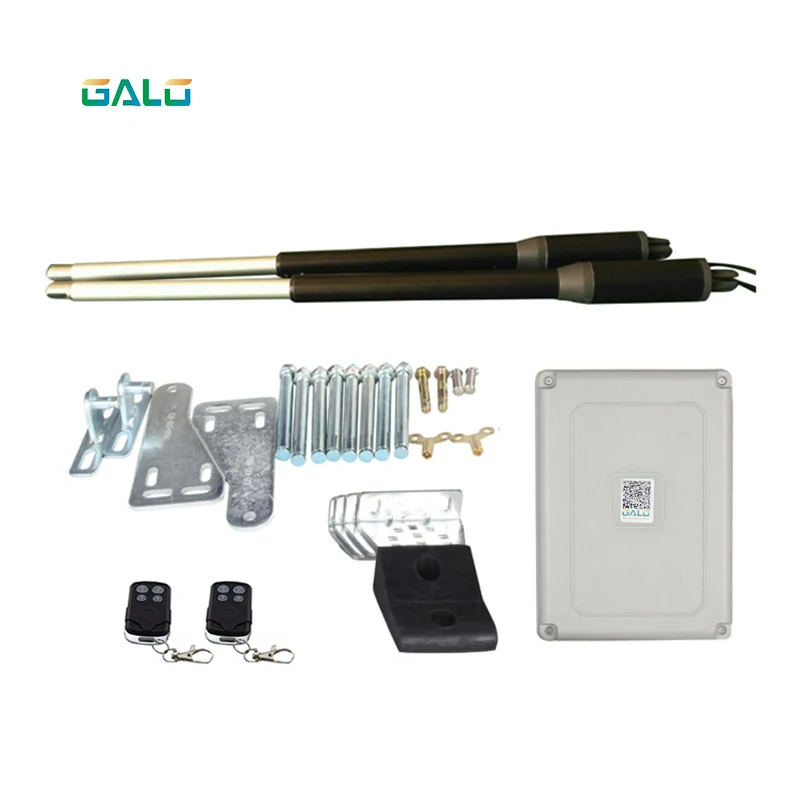 ① 2 * открывания ворот (приводной двигатель)② 1 * блок управления (с трансформатором)③ 1 * набор аппаратных аксессуаров④ 1 * резиновая пробка⑤ 2 * пульт дистанционного управления⑥ 1 * руководство на английском языкеДополнительные аксессуары, выберите комплект цветов, показанный на фотоВ некоторых странах холодный климат, мы добавляем антифриз масло внутри двигателя, он может работать в холодной среде.