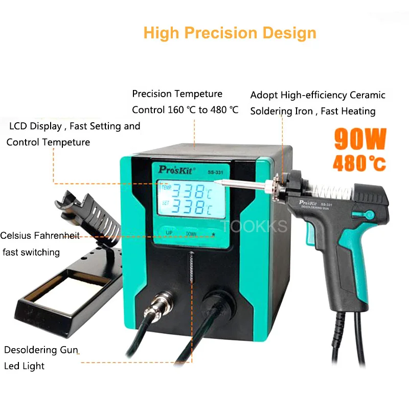 Pro'sKit SS-331H ESD Электрический насос для демонтажа ЖК цифровой BGA всасывающий абсорбирующий пистолет вакуумный припой присоска пистолет BGA инструменты