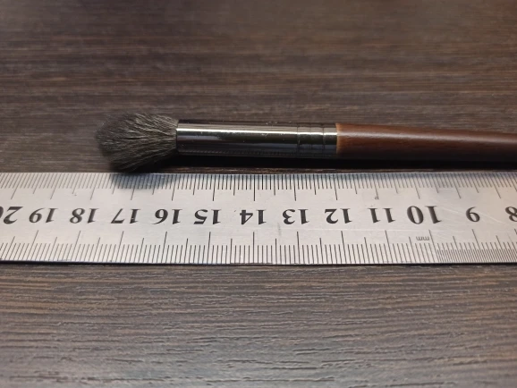 Замечательная кисть, беспроблемный продавец и нормальная доставка. Это уже не первый мой заказ в этом магазине. Независимо от того, берешь ли ты одну кисть или несколько, их доставят быстро и без повреждений. Это крупная кисть, которой можно быстро затонировать веко, нанести хайлайтер или прицельно сухой скульптор. Качество исполнения, натуральный ворс, деревянная ручка и отсутствие малейших косяков — всё это заставляет возвращаться в магазин и покупать снова :)