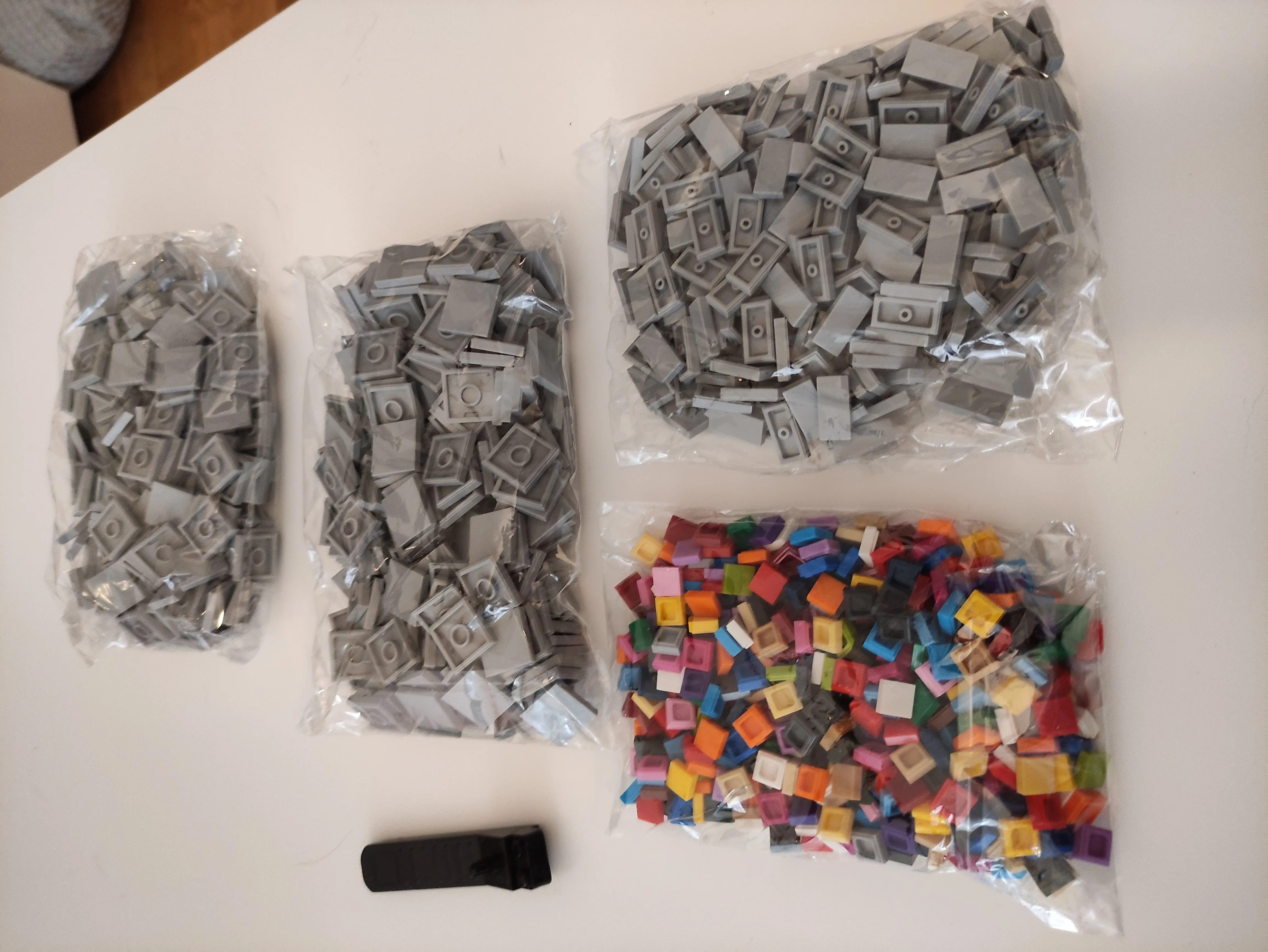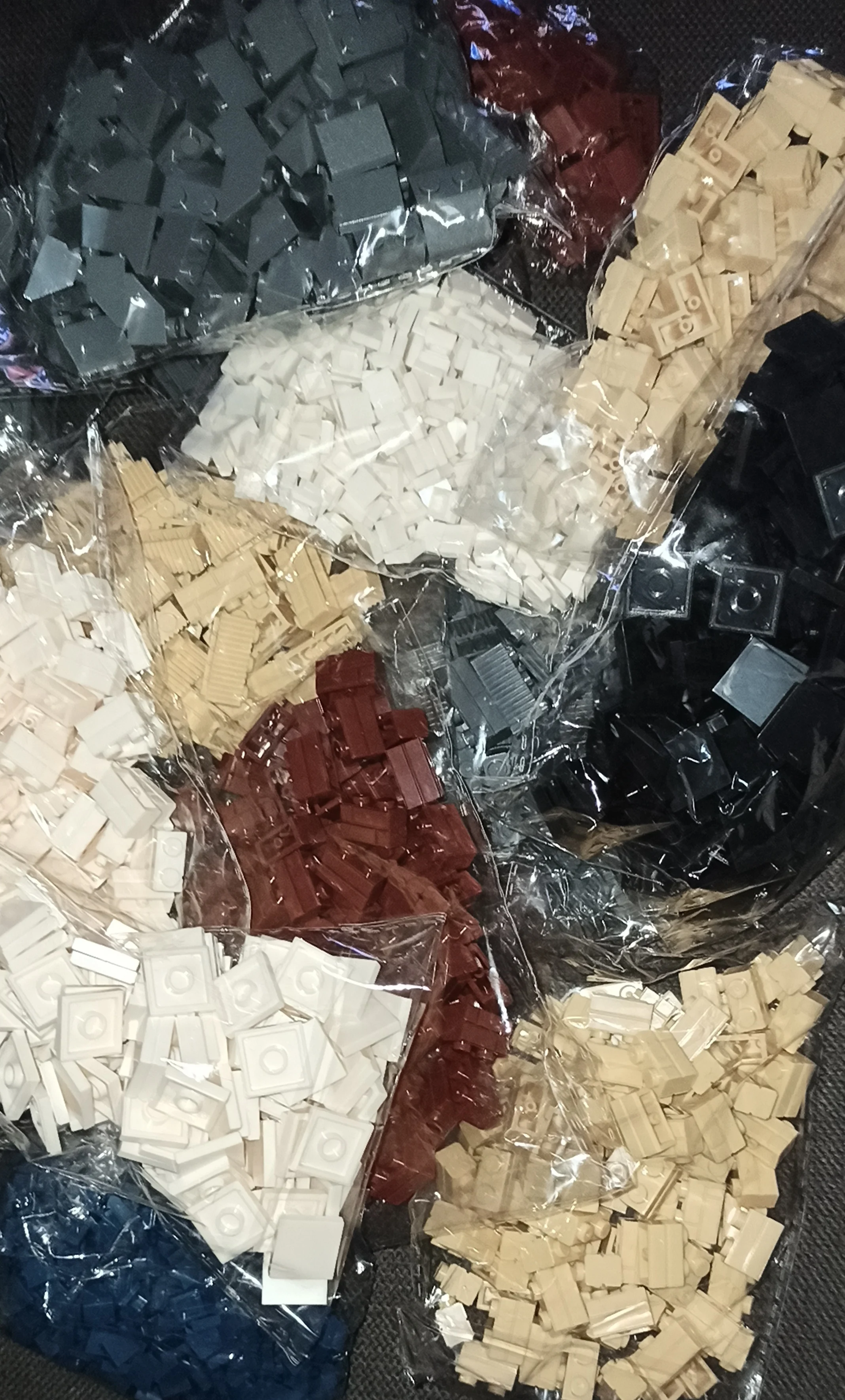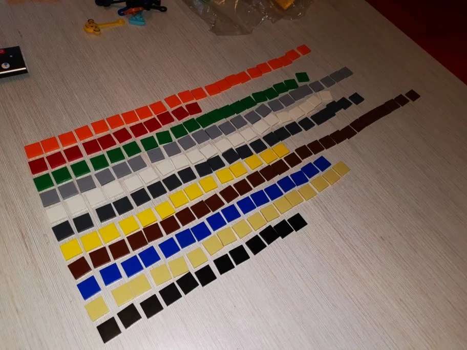 Купил черный, темно-серый и светло-серый. Все цвета точно соответствуют лего (черный, светло-голубовато-серый и темно-голубовато-серый), и части работают и чувствуют себя как Лего. Отличный магазин!