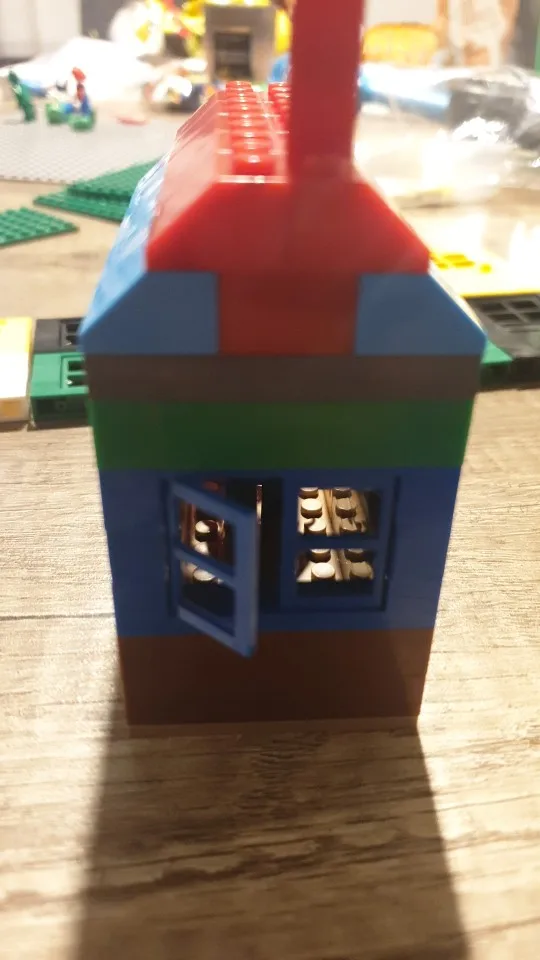 Достойный продукт и выглядит отлично, когда-то выполненный в вашем или вашем ребенке. Единственное, что мне не нравится, это то, что он состоит из многих 1 х 1 кирпичных кубиков в сочетании с нижней и верхней частью, а также дверью или 2 окнами. Покупая его, я думал, что я просто 1 цельный кусок с движущимися частями, но кроме работы, которую вы должны положить в его сборке... Это хорошо.