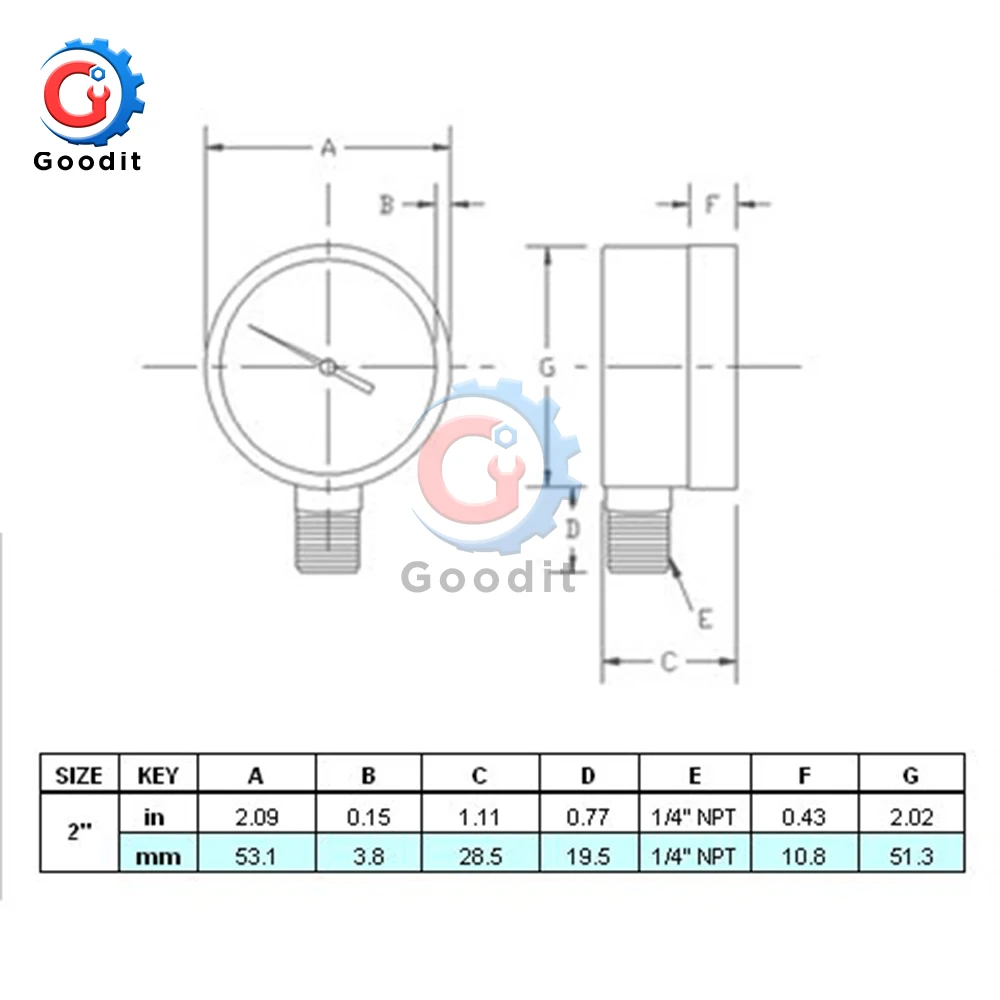 Портативный двойной циферблатный манометр 14 дюйма NPT -30HG0PS, измеритель вакуумного давления, манометр, 2-дюймовый циферблатный дисплей, цифровой манометр