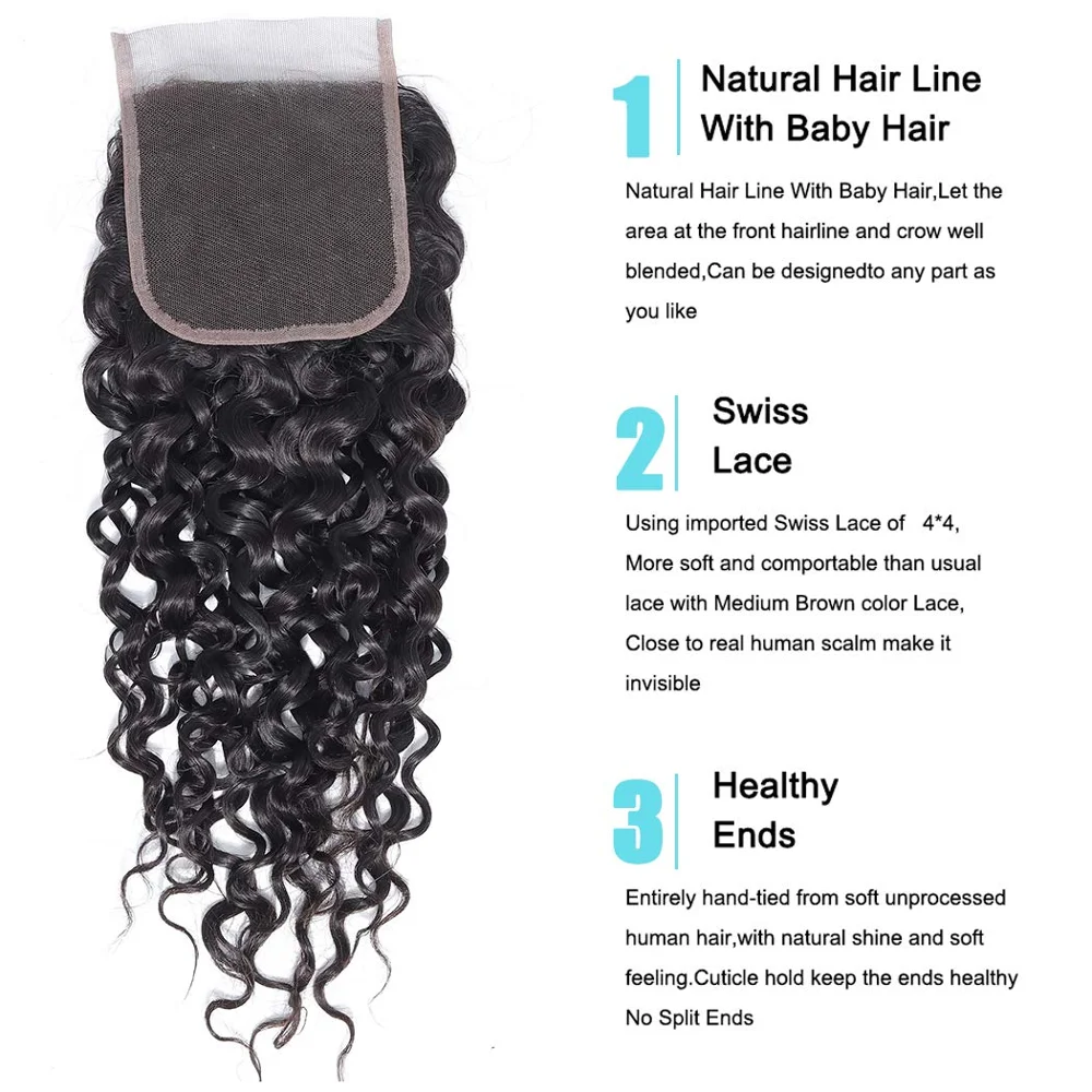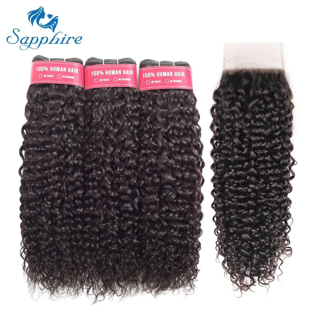 Сапфировые волосы, волнистые пряди с закрытием, вьющиеся бразильские человеческие волосы, пряди с закрытием, норковые бразильские волосы, пряди