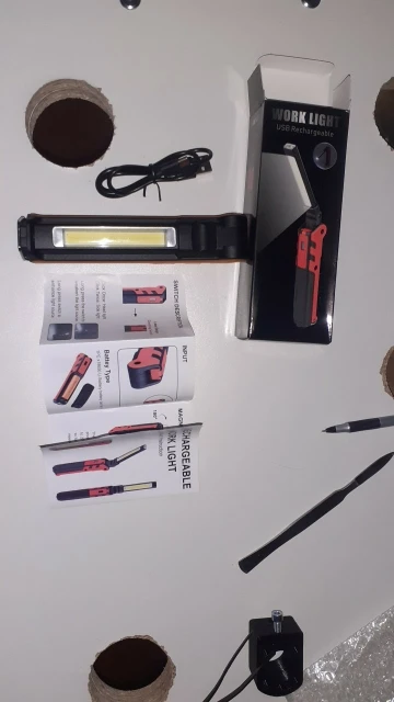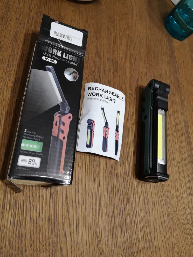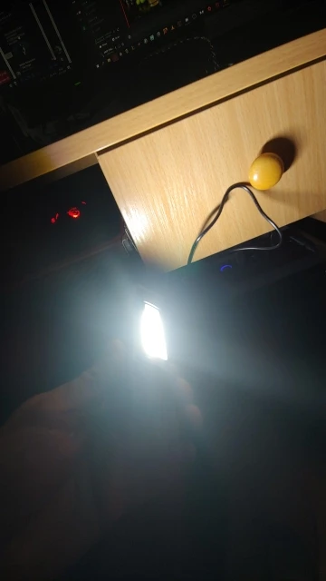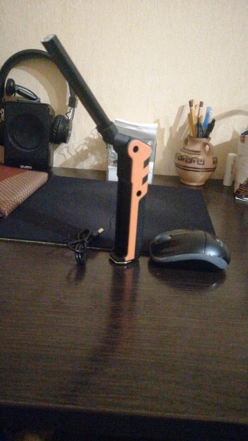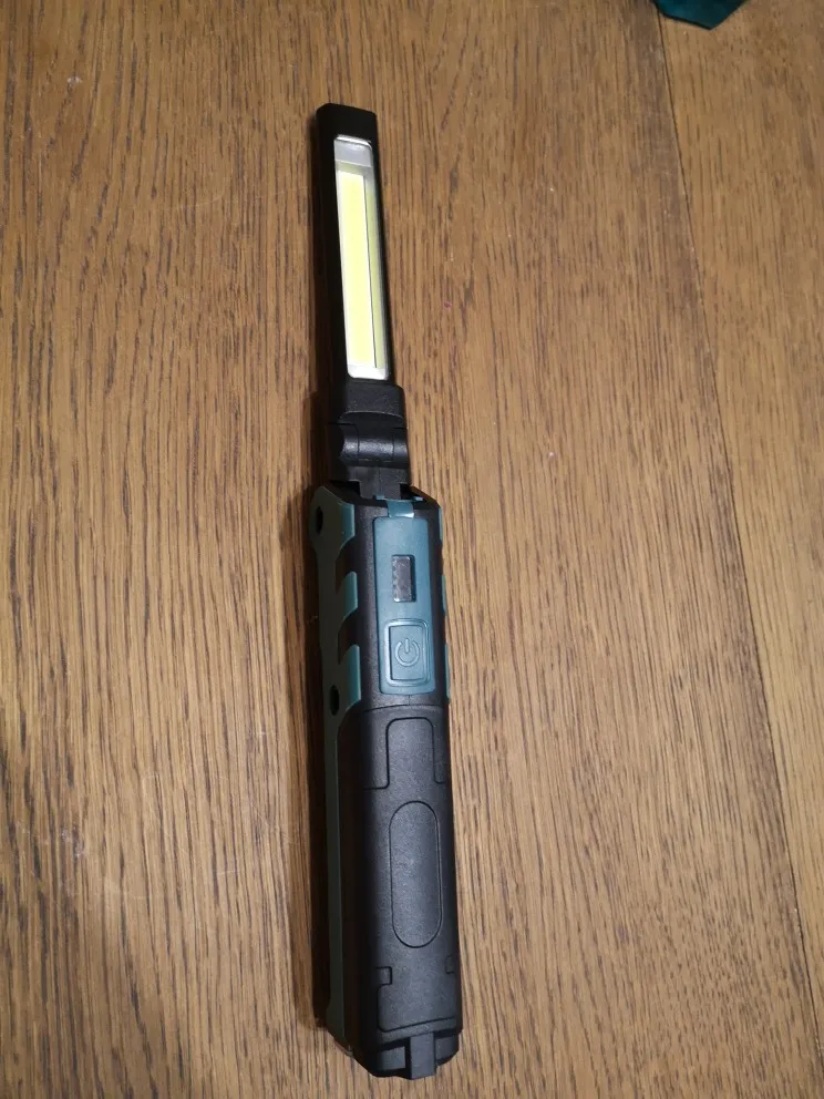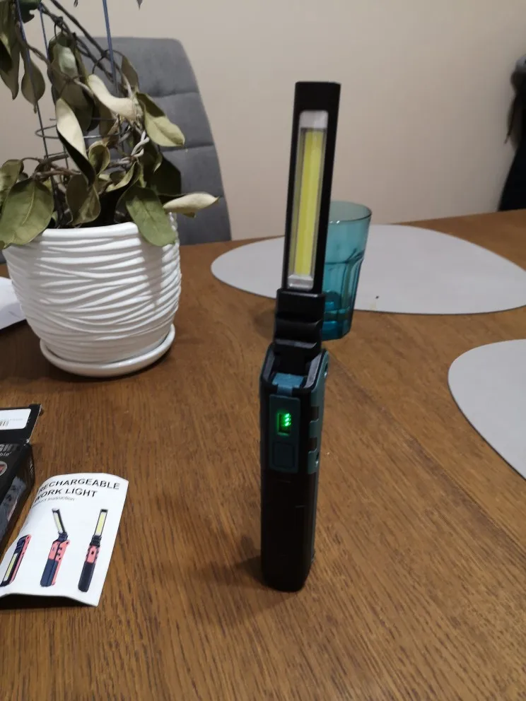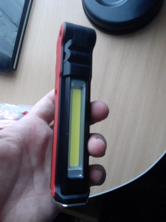 Самый мощный фонарь, который только есть. Индикатор заряда. Это не просто фонарь, а прожектор какой-то. Берите и думаете вообще. Аккум 18650 на 3400 ставьте и будет светить еще дольше. Очень мощный светодиод с торца. Продавцу большой респект. Доставка 3 ДНЯ ЖЕВАНЫЙ КРОТ IML Москва!!! Пардон за одну фотку, заболел ковидом, а фонарь на работе остался((( заказал с начала набодобие этого, черный складной worklight за 750₽ уйня полная пздц, не сравнить с этим вообще.