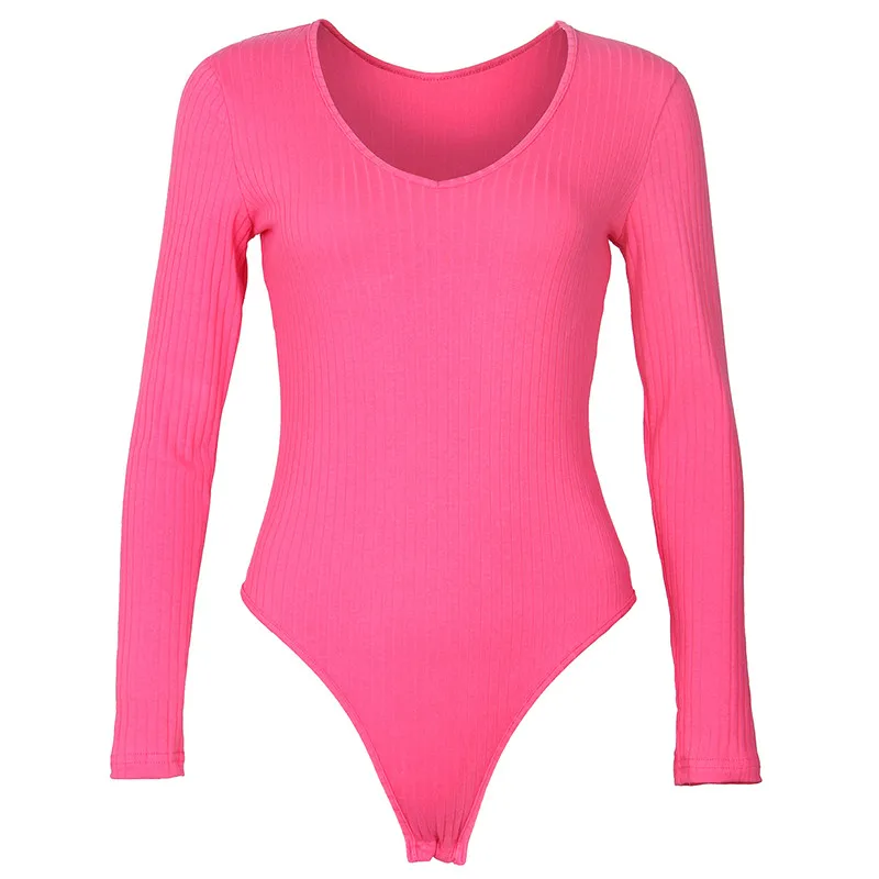 Женский комбинезон с длинным рукавом, весенний красный обтягивающий комбинезон с V-образным вырезом, черного и белого цветов, M0075