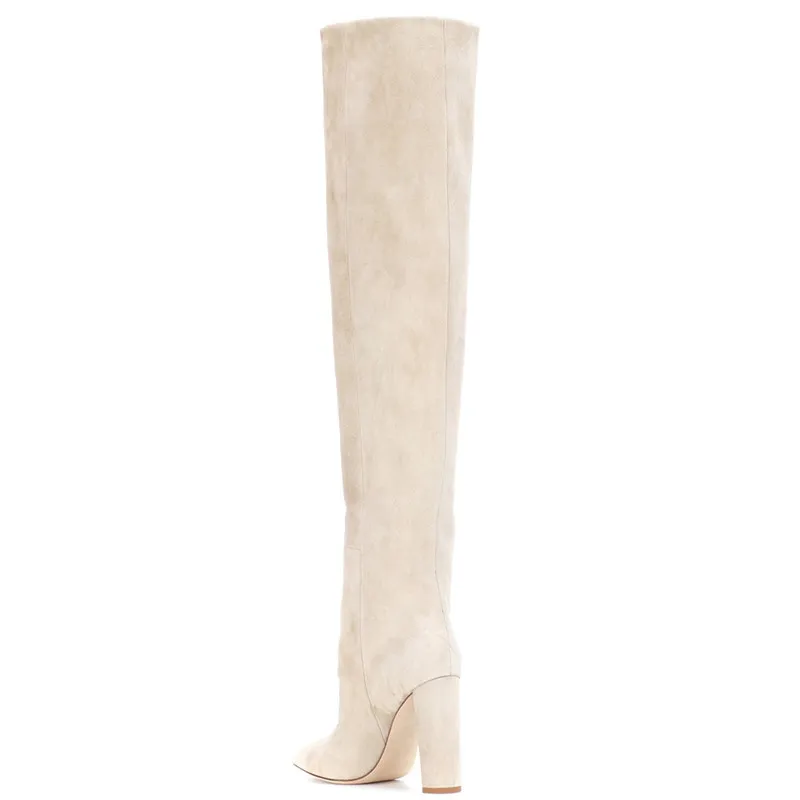 Женские сапоги выше колена из искусственной замши, бежевые высокие ...