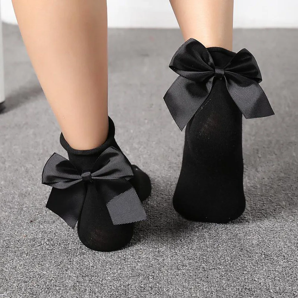 Женские разноцветные хлопковые носки до щиколотки, красивая Большая лента, короткие носки с бантом