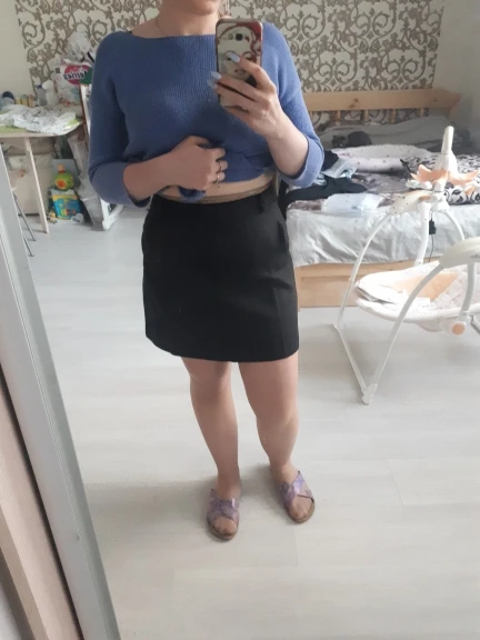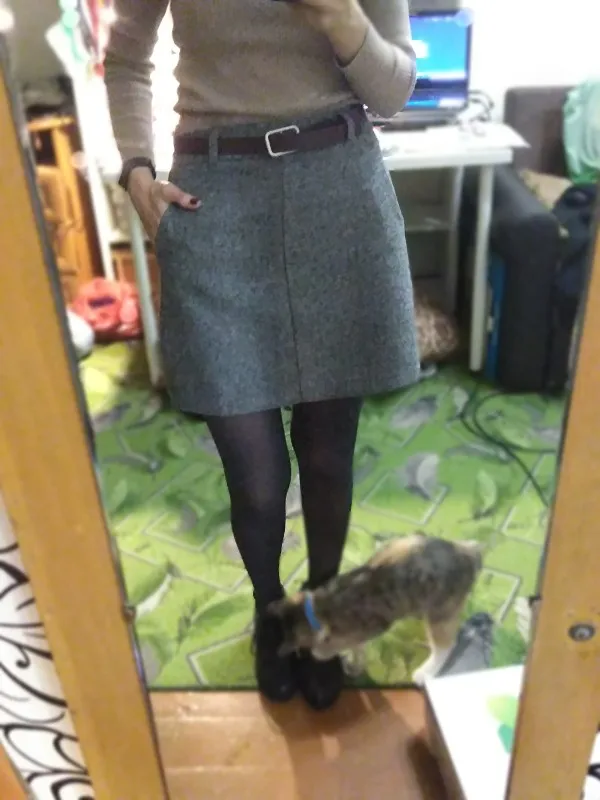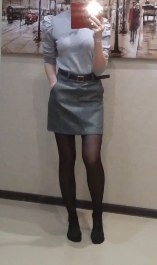 Юбка хорошая, брала на размер больше, очень хорошо сидит. Ремень сильно пахнет, но ничего страшного)