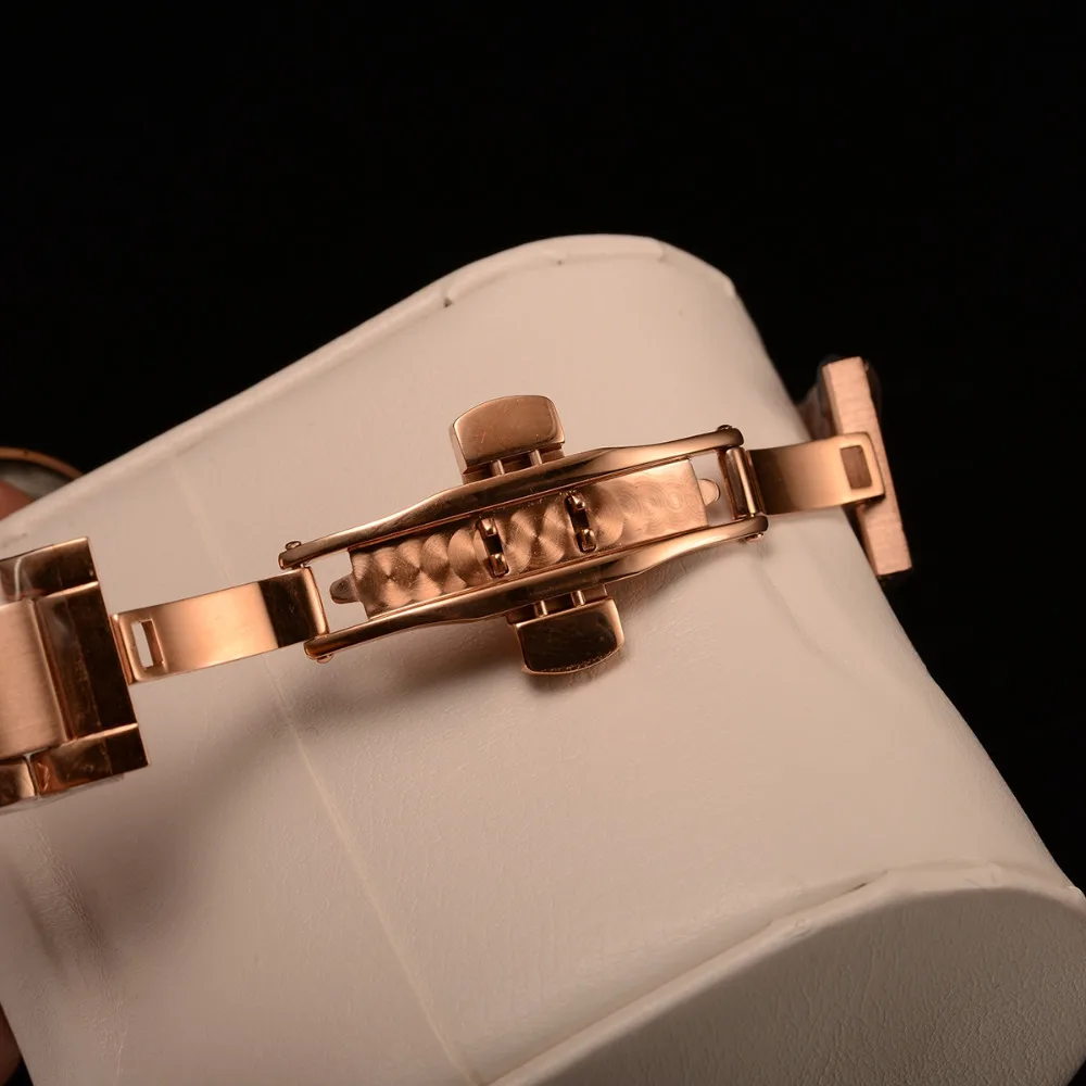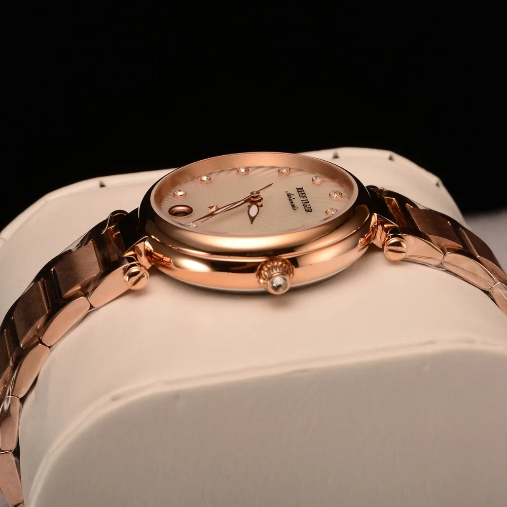 Часы женские из розового золота, с автоматическим браслетом и брилл...