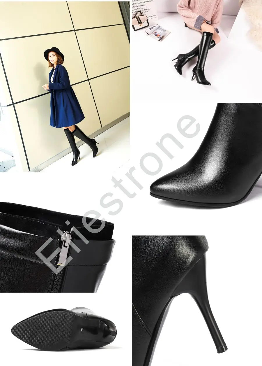 Женские сапоги до колена на высоком каблуке SH285, Зимние удобные черные, белые сапоги большого размера 10, 43, 45
