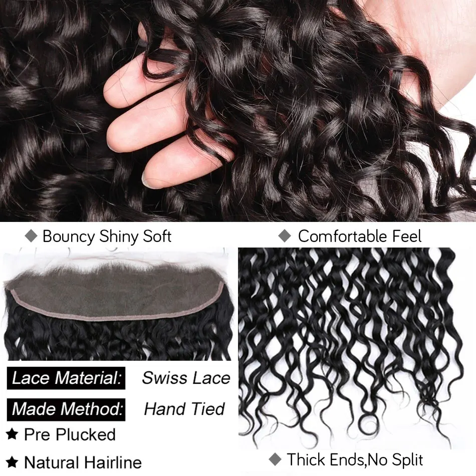 Бразильская волна 13x6 Прозрачная Кружевная передняя часть с пучкам...