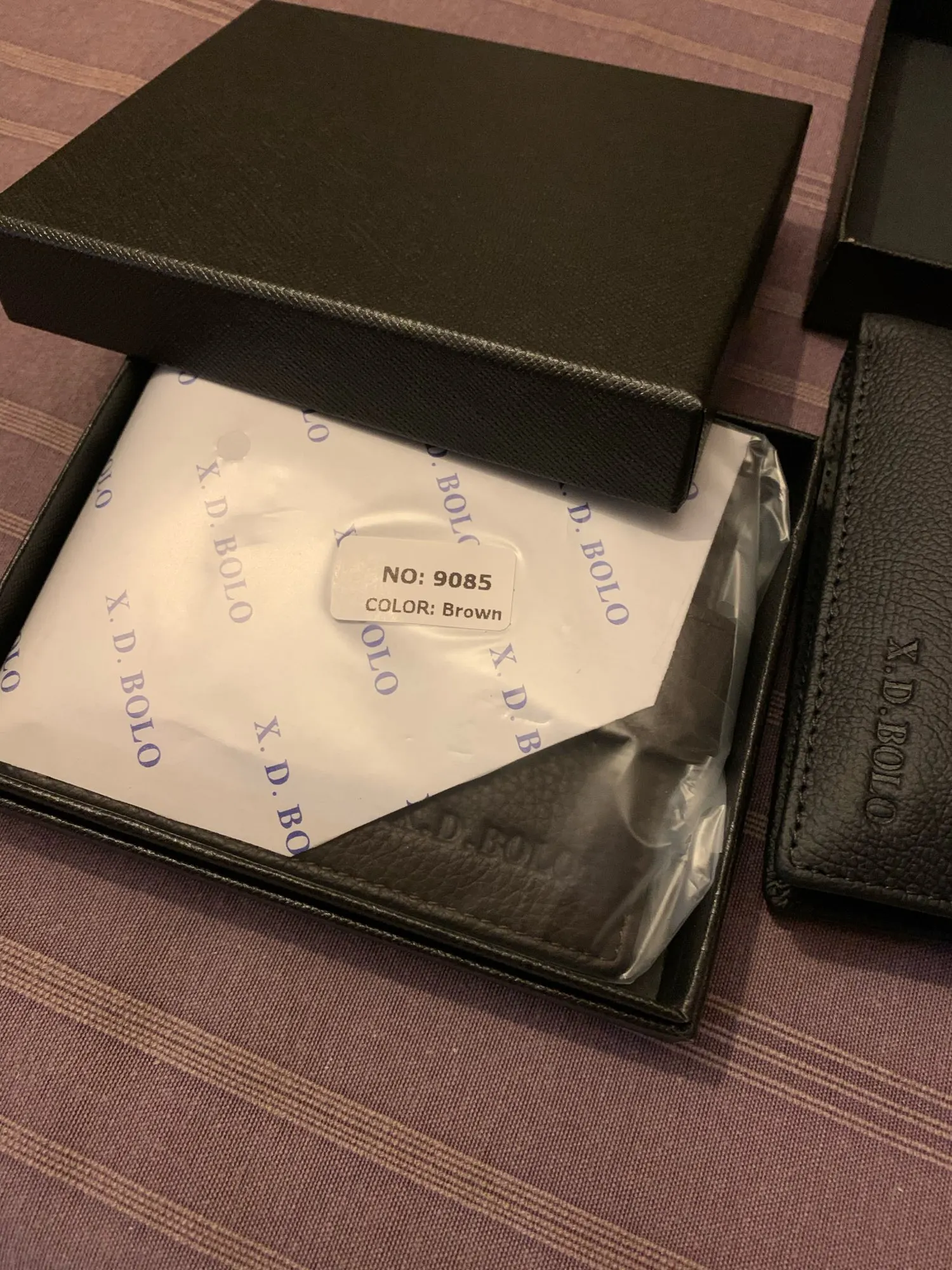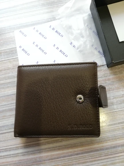 Кошелёк хороший, оригинально был упакован в коробочку, идея для подарка. Пишут что кожа, я не поняла, вроде похоже, но после использования будет понятно. Позже постараюсь дополнить отзыв. Цвет коричневый, красивый, мужу понравился. Отделений для купюр достаточно + карман на кнопке под монеты+ ячейки для карточек. Достойный вообщем кошелек, не жалею что заказала. Все чётко, как в описании. Доставка заняла 17 дней. Трек отслеживается.