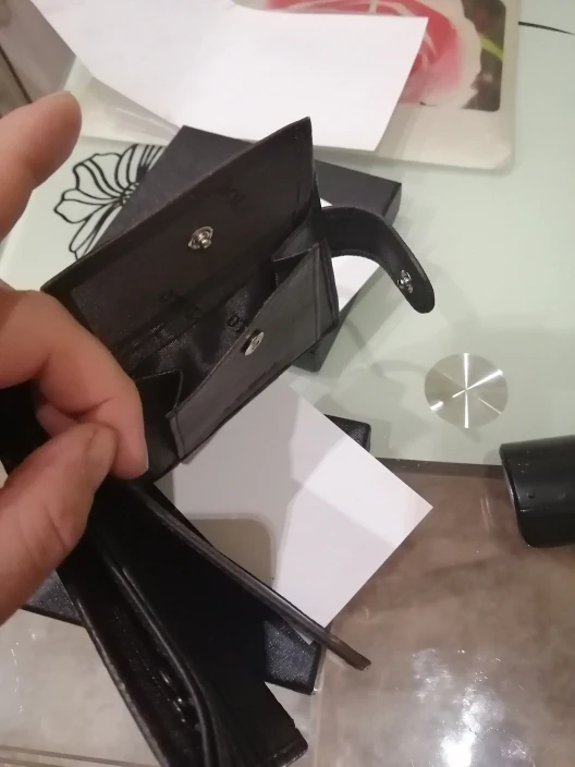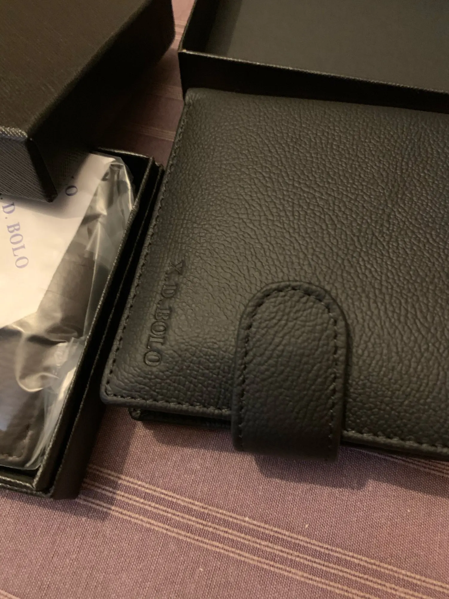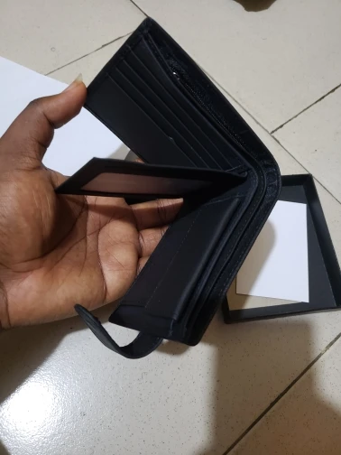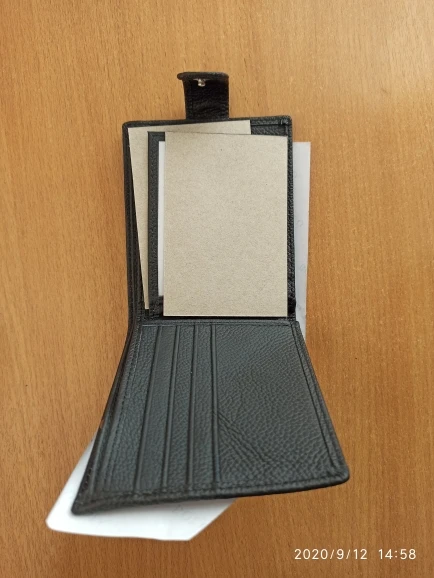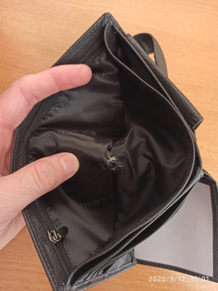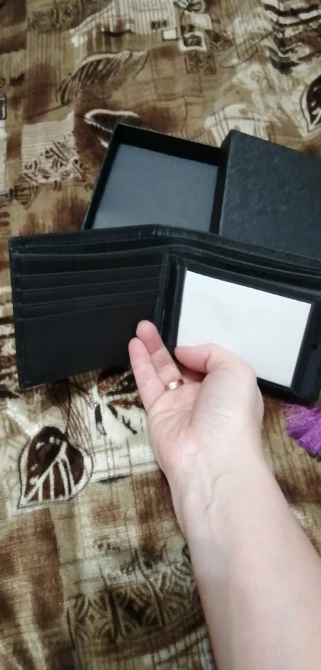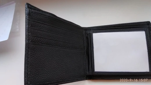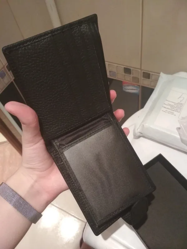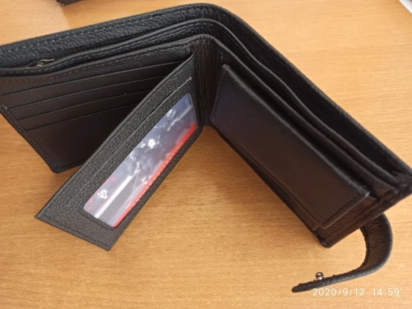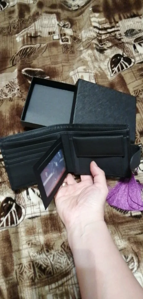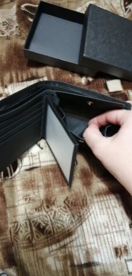 Посылка добралась за 28 дней , швы на кошельке качественные , нитки нигде не торчат, присутствует небольшой запах, надеюсь выветрится. Так и не смог определить кожа это или кожзам, но выглядит добротно. Thank you so much seller.