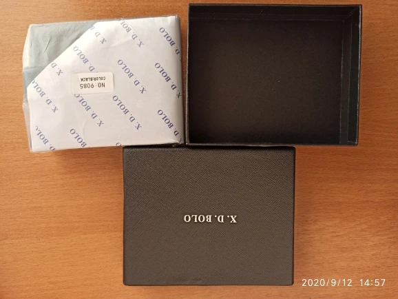 Доставка в Московскую область быстрая - 2 недели. Довольна качеством: ровные строчки, постороннего запаха почти нет, кнопки работают нормально. Тип кошелька - классический, с полным набором необходимых отделений. Цвет - brown, это темно-коричневый цвет, почти чёрный. Упакован в подарочную коробочку. Покупкой довольна. Спасибо продавцу.