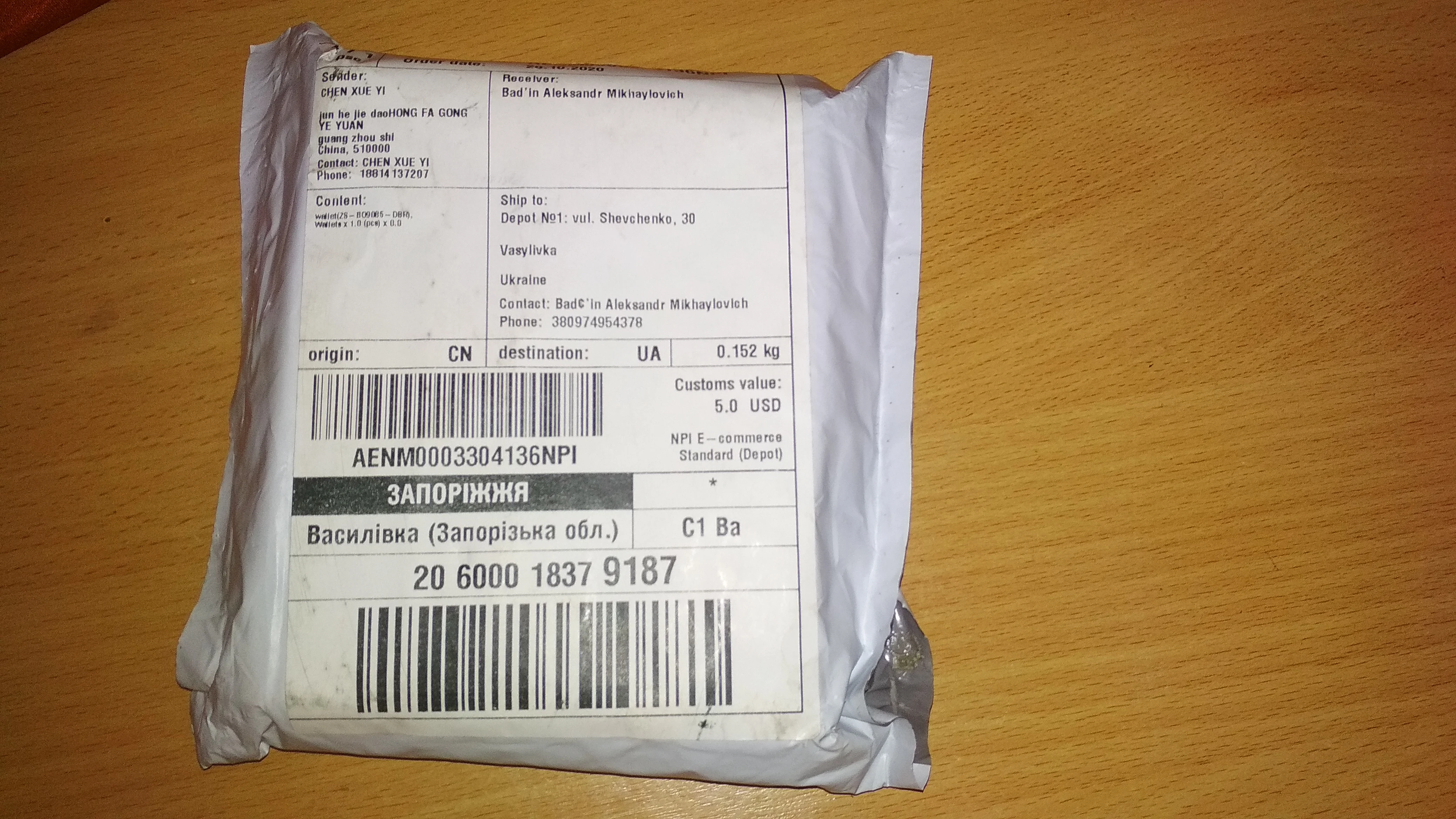 Прийшов за 2 тижні в Україну, файно упакований, не пошкоджений. Всередині був маленький подаруночок від продавця. Покупкою і продавцем задоволений!
