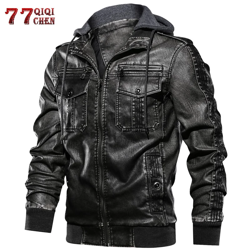 Куртка QIQICHEN мужская с капюшоном, мотоциклетная куртка из искусственной кожи, роскошные мотоциклетные куртки в стиле милитари, европейских размеров, S-2XL