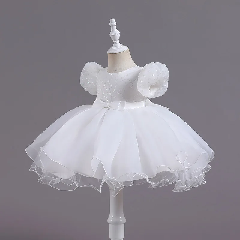 Зимнее платье для девочек с длинными рукавами, белые платья для крещения одежда для маленьких девочек на 1 год кружевное бальное платье для крестин