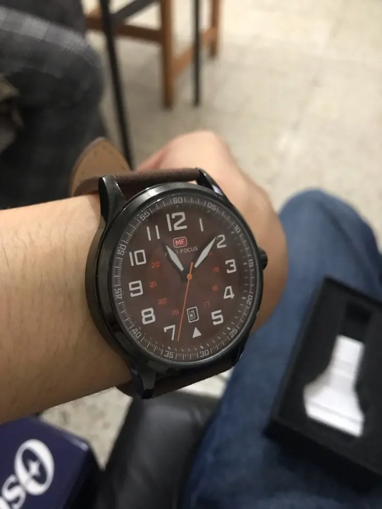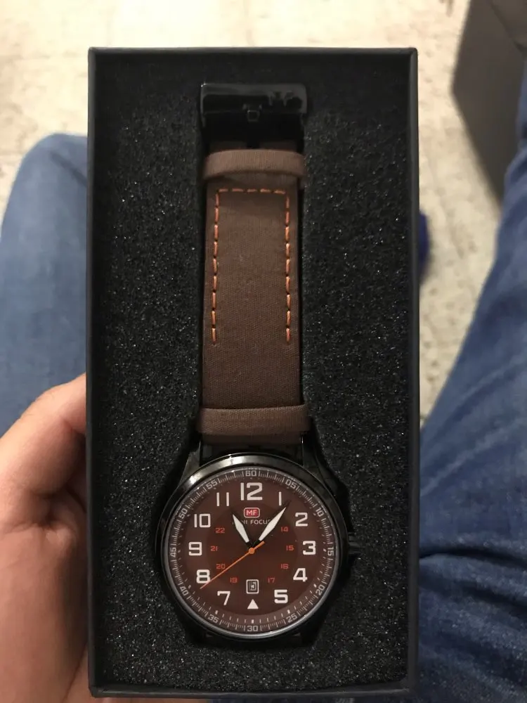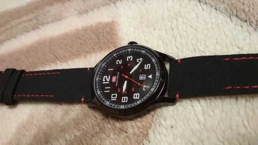 Доставка в Москву пара недель. Выглядят хорошо, стрелки при переводе времени не болтаются, идут плавно. Ремешок - смесь ткани и резины. Не знаю, насколько долговечен. Пока новые, часы смотрятся хорошо. Есть унифицированная инструкция на английском.