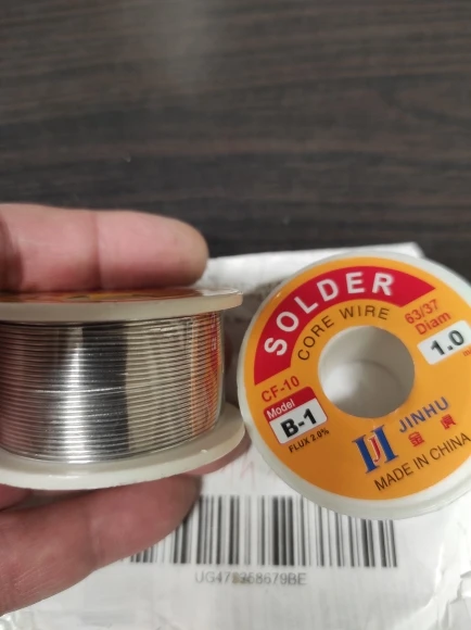 Припой не solder, а jinhu. Не знаю в чем разница, но платы паять им вполне нормально. 100 грамм вместе с бобиной В Москву пришла за месяц. Уже второй заказ у этого продавца. В первый он случайно не доложил оплетку для снятия лишнего припоя, договорились с ним, что проходит во вторую. Все положил, продавец ответственный
