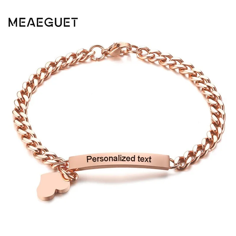 Гравировка ID браслет для женщин Персонализированные текст цвета розового золота браслет для Femme нержавеющая сталь мама, жена Женская Ювелирные изделия дропшиппинг