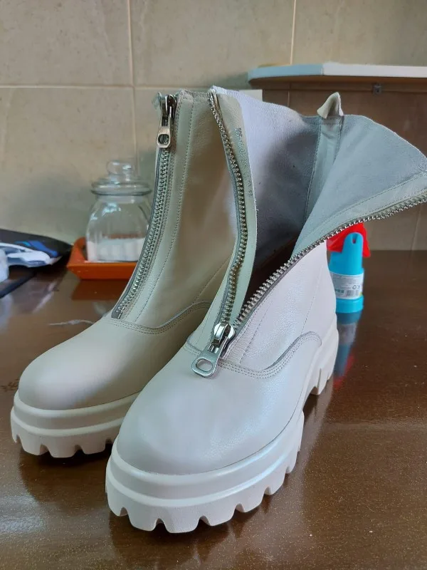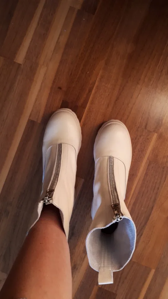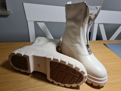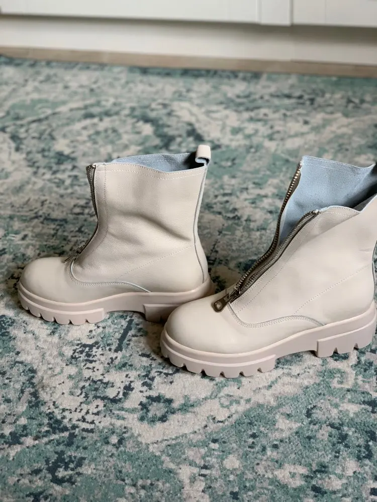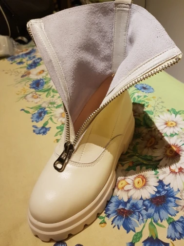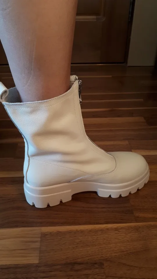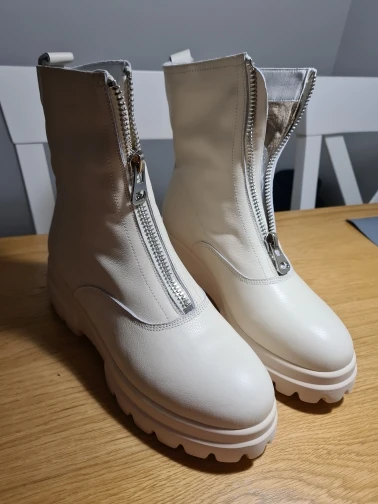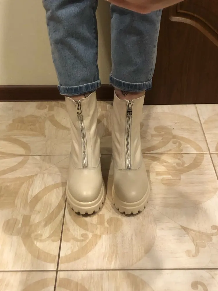 Ботинки мне не понравились. Качество не очень, как материала, так и пршива. Цвет грязно-молочный. Размер не соответствует сетке продавца. На свою стопу 25,5см выбрала 41, они велики на 2 размера и очень широкие.
