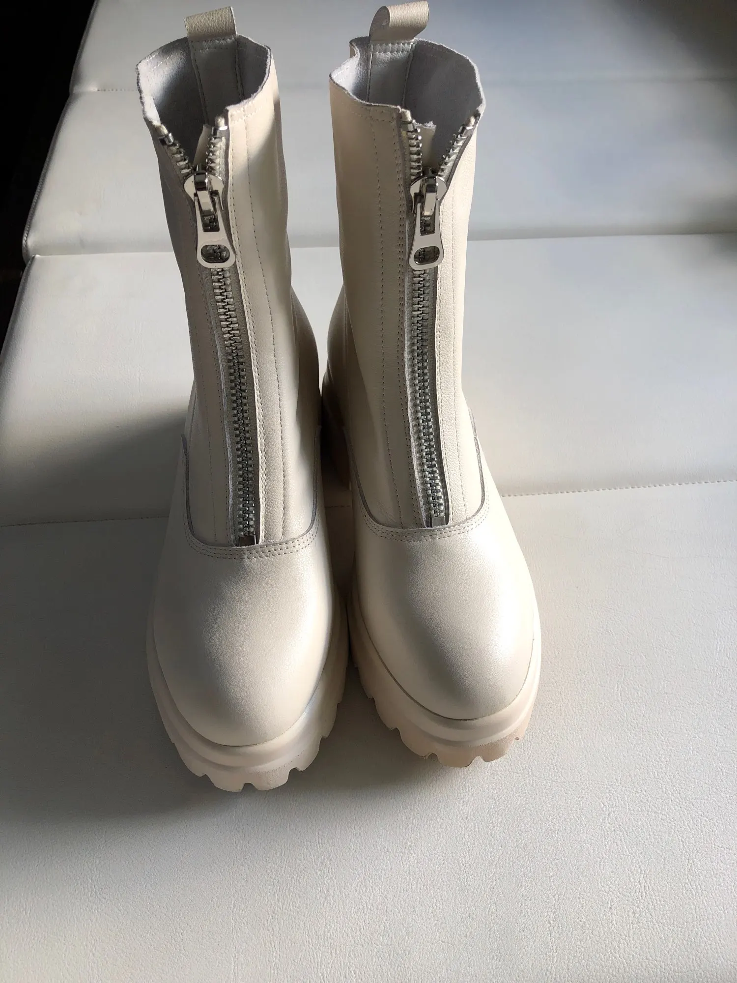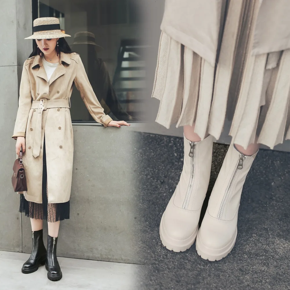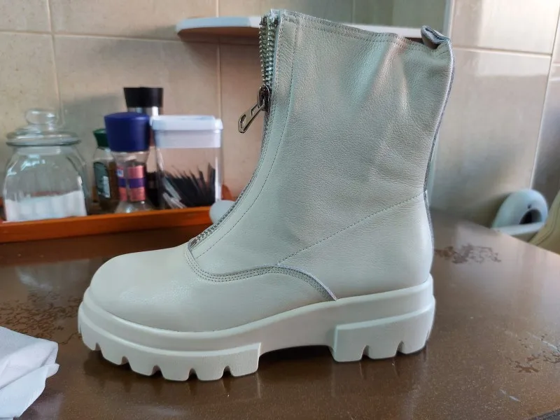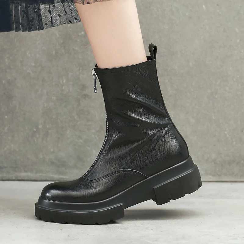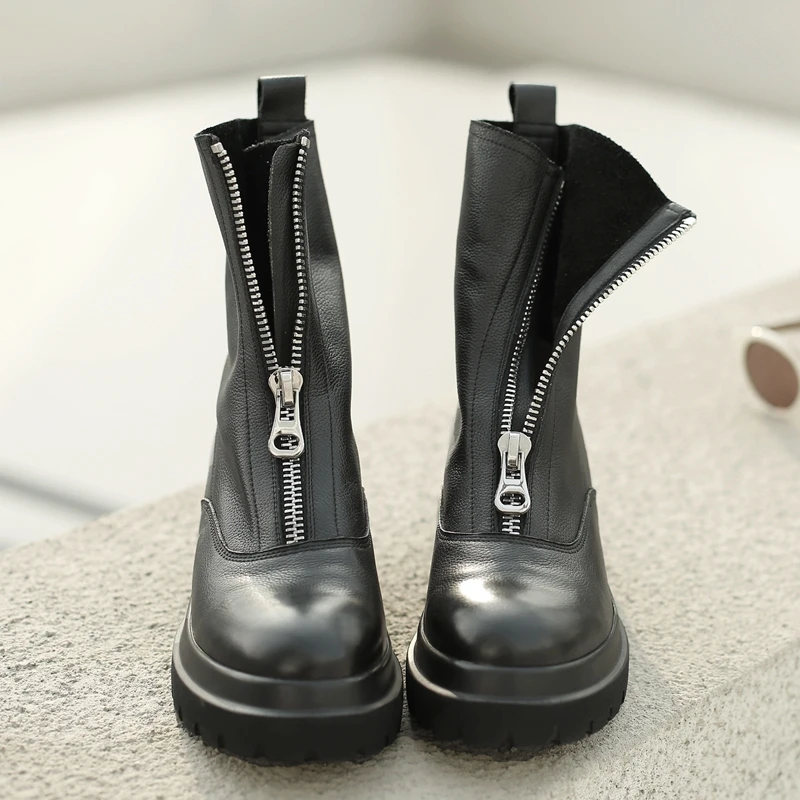 Ботинки женские из натуральной кожи, на платформе, с молнией спереди