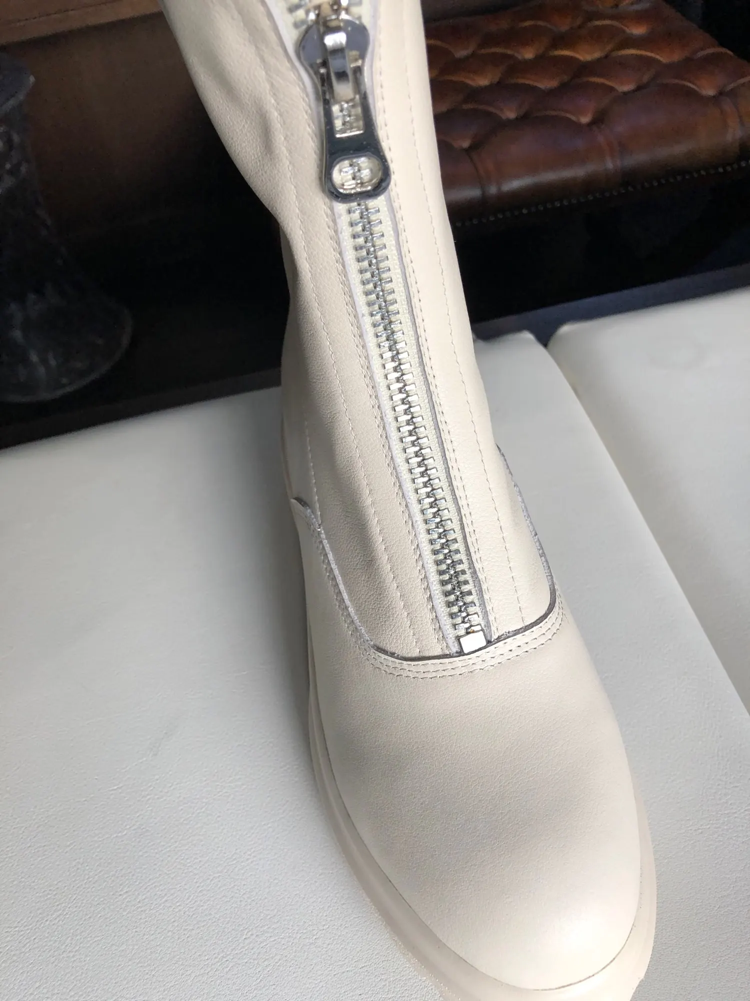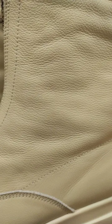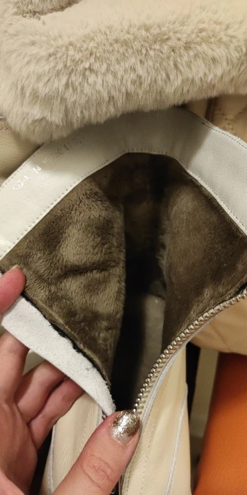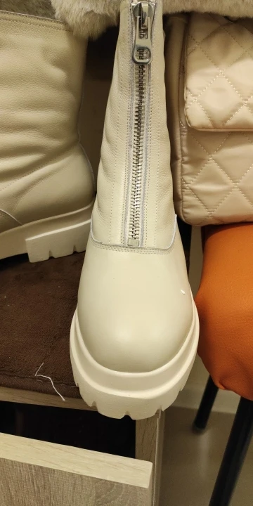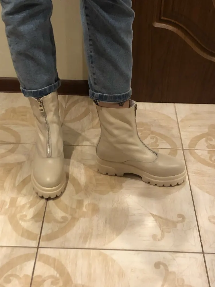 Сапоги-супер!!! Когда натуральная, все сшито аккуратно, клея не видно, фурнитура (замок) добротный! Очень сомневалась покупать, но решилась! И не зря! Очень довольна!ношу 37.5 , ширина ноги средняя. заказала 38. Нога свободна, с носочком будет отлично! Цвет светло-бежевый, Или темно-молочный.