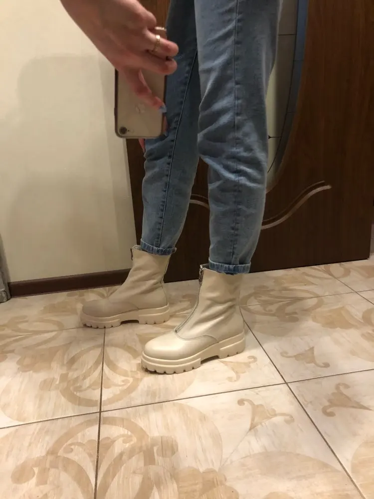 Хорошие демисезонные ботинки,очень стильные.продавец отзывчивый-попросила отправить вместо белых чёрные,все прислал!заказ пришёл быстро,планирую ещё что-нибудь посмотреть в этом магазине.следов клея нет,все прекрасно прошито.надеюсь,порадуют меня весной)))