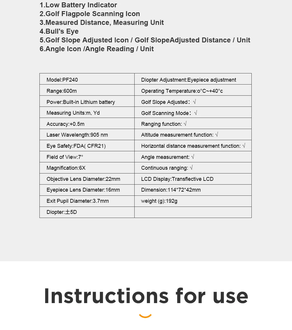 Mileseey PF210 PF2E PF240 фотометр для гольфа 600 м дальномер 6X Монокуляр для гольфа, спорта, охоты