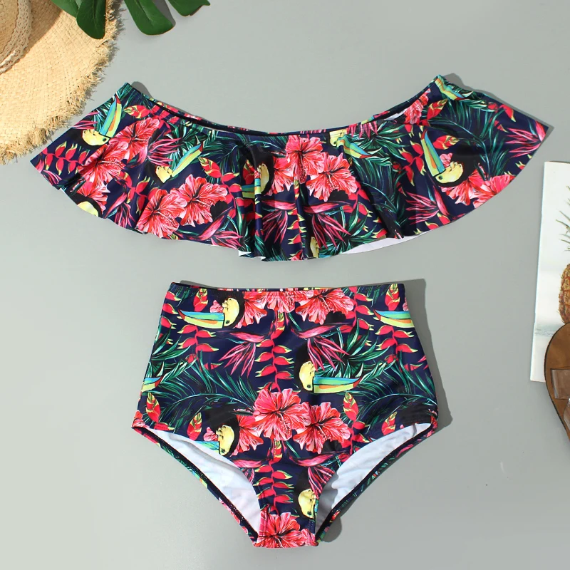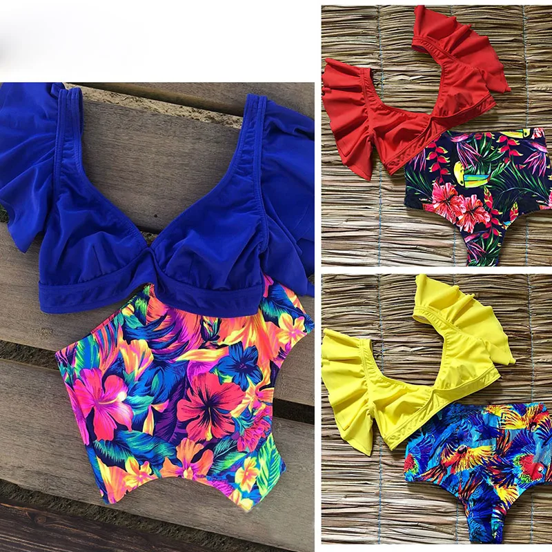 Бикини Miyouj с высокой талией, Цветочный купальник с оборками, куп...