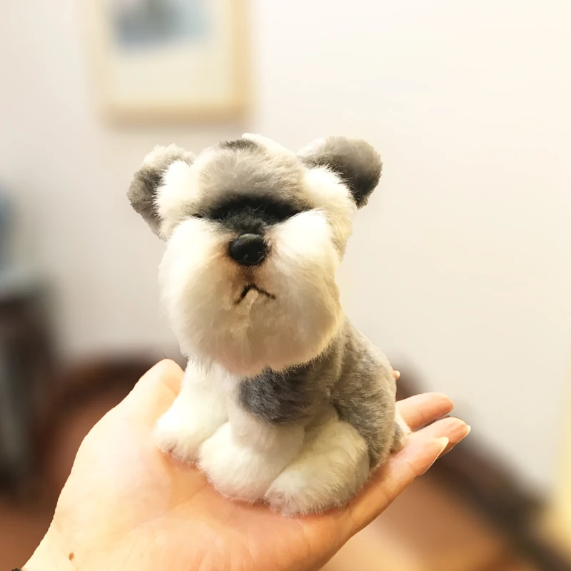 9 см 3 1/2 дюйма милый маленький Шнауцер щенок Реалистичная собака плюшевая игрушка мягкое домашнее украшение пушистый восхитительный подарок на день рождения для детей, Прямая поставка