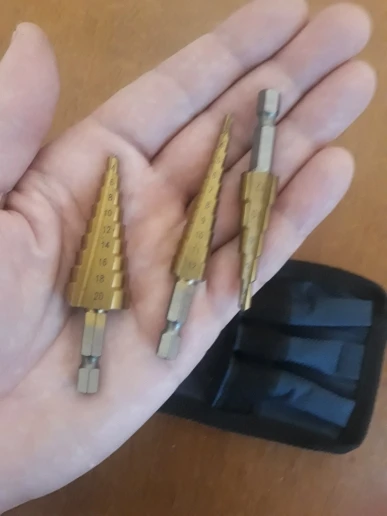 Первый раз взял такие свёрла для "мягких" материалов: дерево, текстолит, алюминий. Для стали, всё же, буду по старинке :) Шуруповёртом отлично работают, проверил на текстолите и тонком алюминии. Удобный чехол для хранения. За такую цену можно взять просто так, на всякий случай. Доставка в Подмосковье в сборной посылке чуть больше месяца. Рекомендую к покупке в этом магазине. Спасибо!