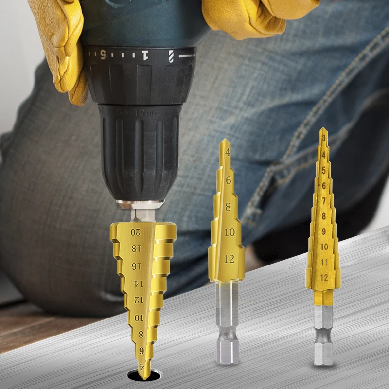 3 шт.компл. 3-12 мм 4-12 мм 4-20 мм HSS прямой паз Шаг сверло Титан с покрытием из дерева металла Отверстия Резак колонкового бурения набор инструментов