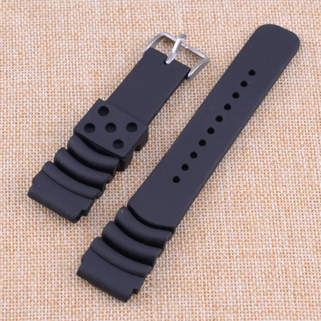 Черный Спортивные часы на резиновом ремешке ремешок 20 мм22 мм для дайвинга Seiko