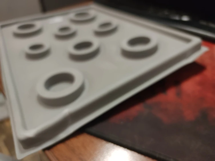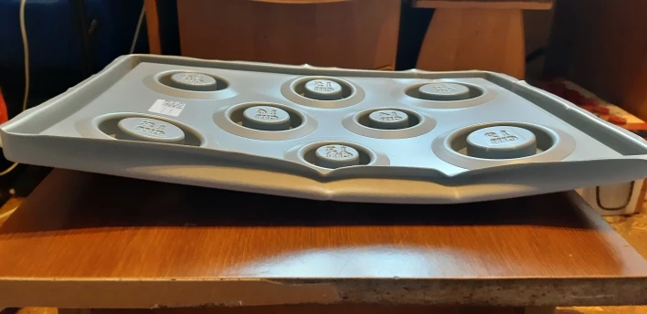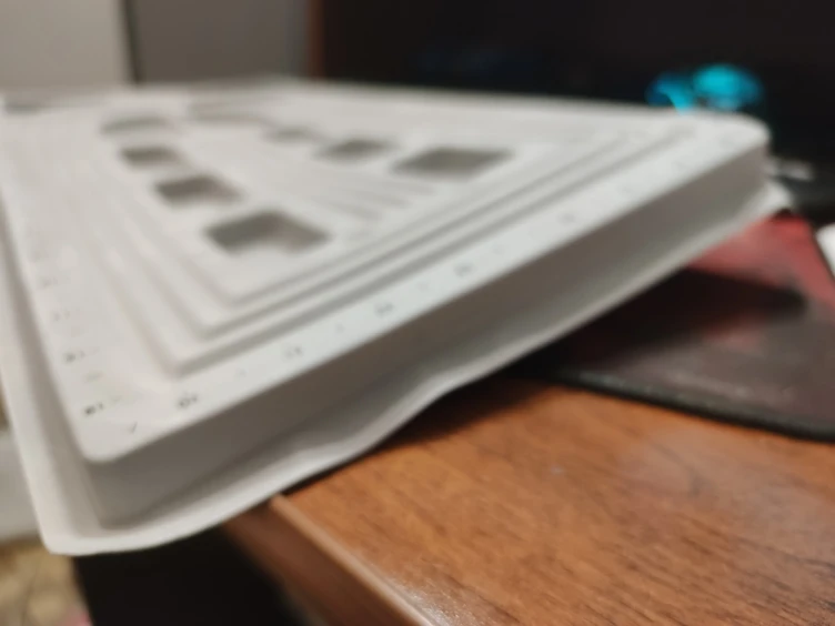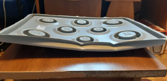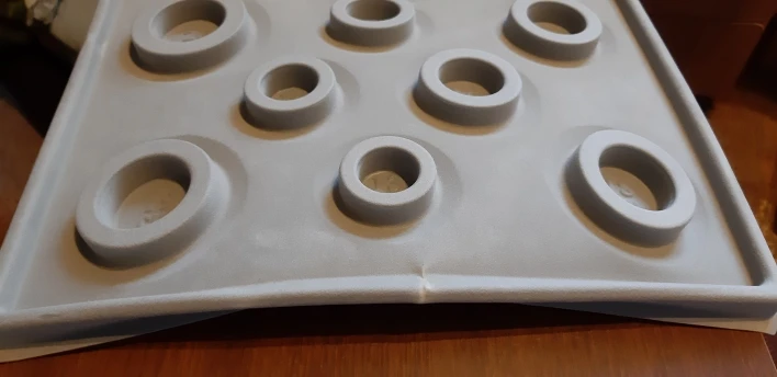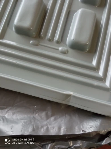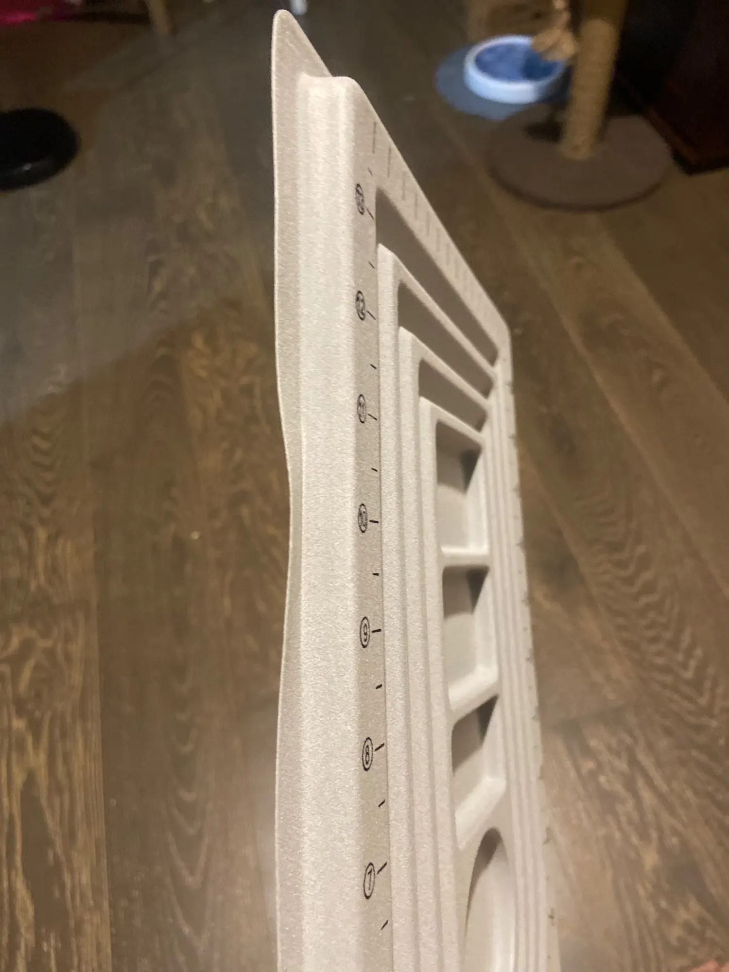 Фото - как будто из другого материала. Материал тонкий хрупкий упаковочный (как для тортов, только чуть плотнее) пластик, с одной стороны который покрыт бархатным напылением с делениями; бархат очень быстро царапается (пришёл уже таким). Дошёл быстро, через день был у двери. Слегка погнут край, и сама поверхность поцарапана. Пользоваться будем, но я за такую цену ожидала другой товар. Очень завышена цена. Хватит не на долго при активном использовании, покрытие сотрется очень быстро. С продавцом не общалась.