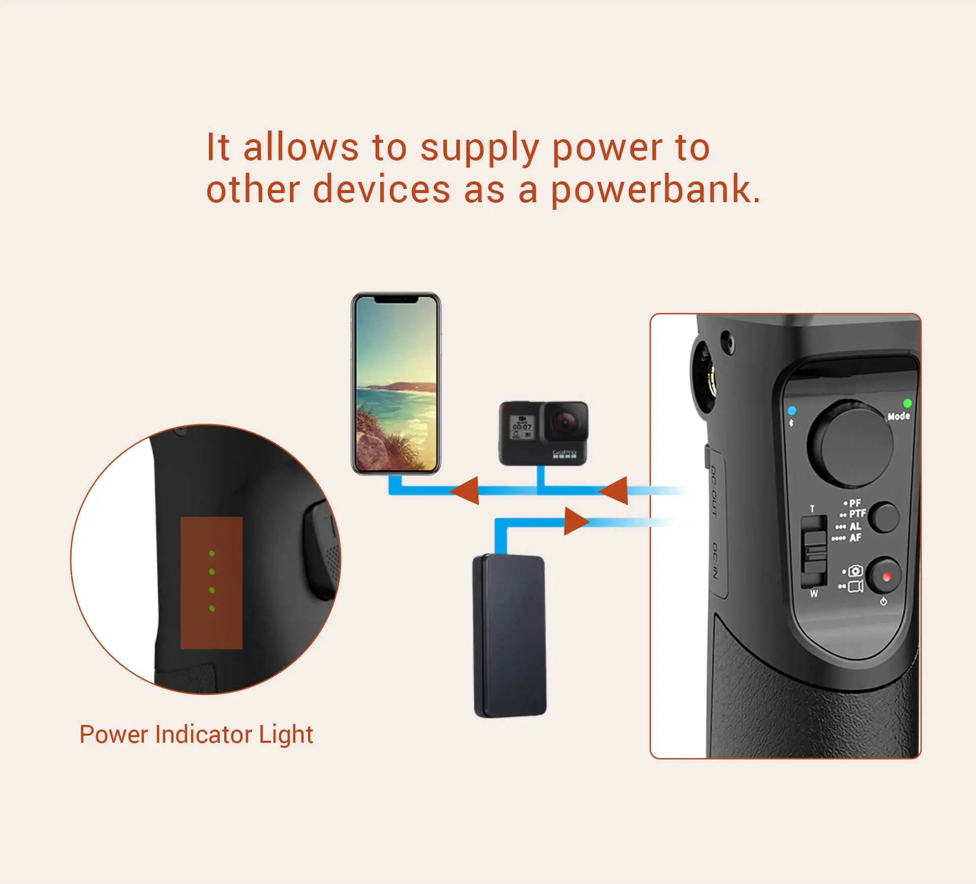 Встроенный аккумулятор емкостью 3600 мАч обеспечивает более длительное время работы до 8 часов. Светильник индикатора питания указывает на емкость аккумулятора в реальном времени. Он также имеет выходной порт USB power bank, который может работать как внешний аккумулятор, и iSteady мульти настроен с портом Micro USB для подзарядки gimbal.