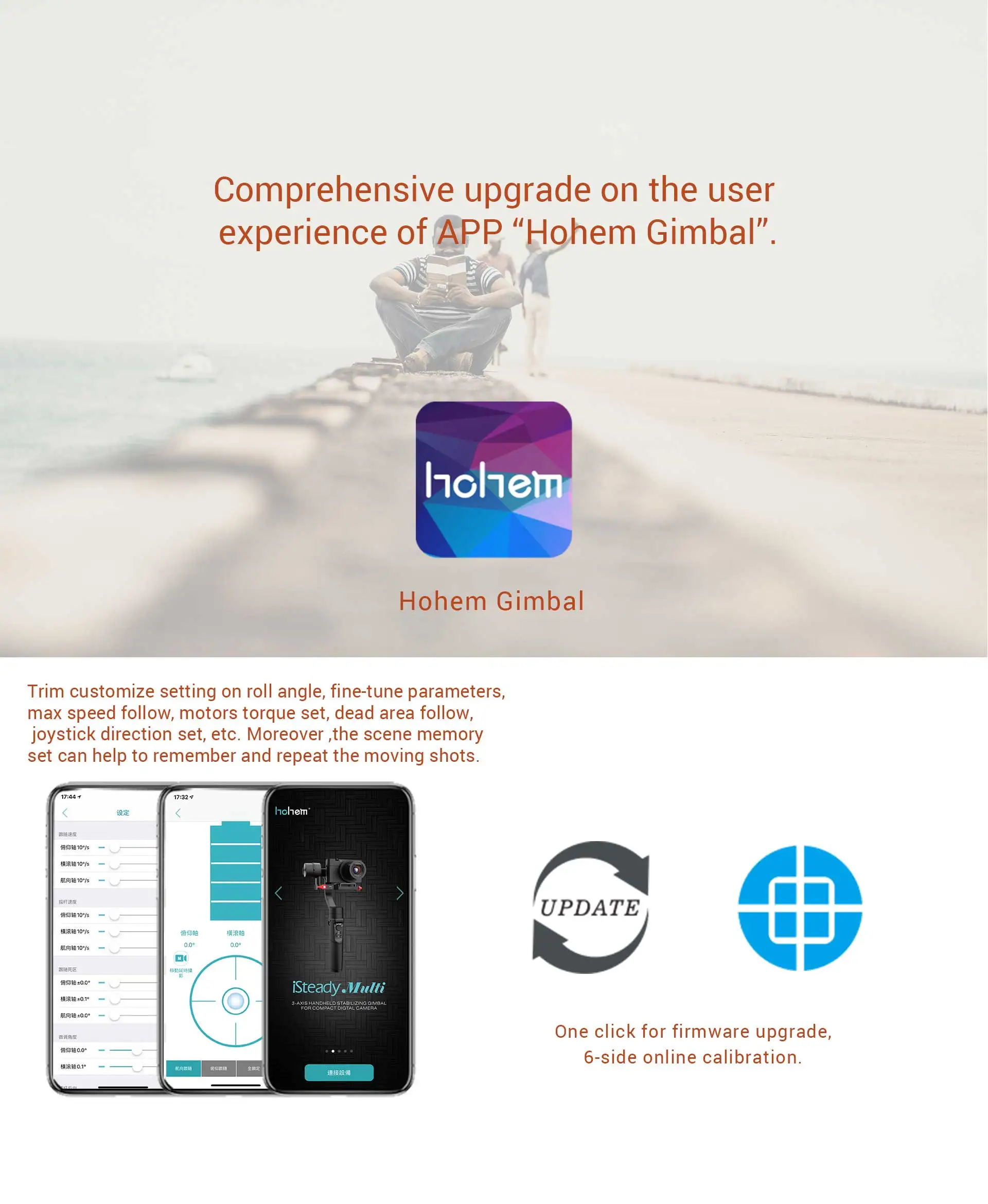 Hohem iSteady мульти 3-осевой ручной шарнирный стабилизатор для камеры GoPro для цифровой Камера экшн Камера & смартфон 8hrs рабочего времени 600 ° Пан вращения спусковой кнопки новое приложение