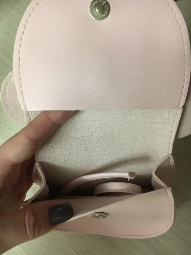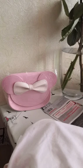 Сумочка отличная, цвет как нас картинке розовая с красным бантом