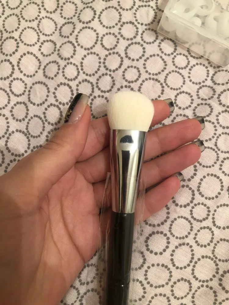 Кисти в этом магазине отличные, эта кисть отлично подходить для тональной основы, хоть я и люблю больше спонжи, но она действительно мягко распределяет крем/консилер и так далее. Пришла за две недели на нп.