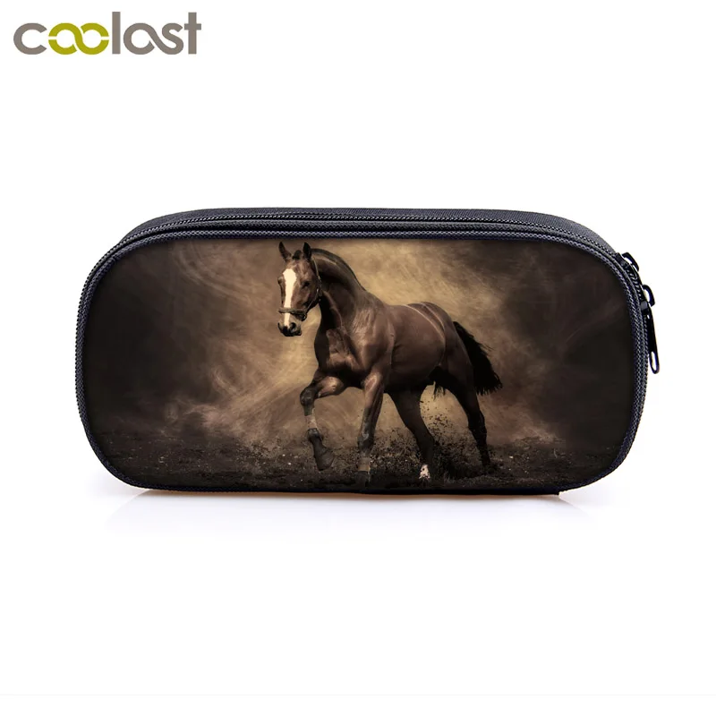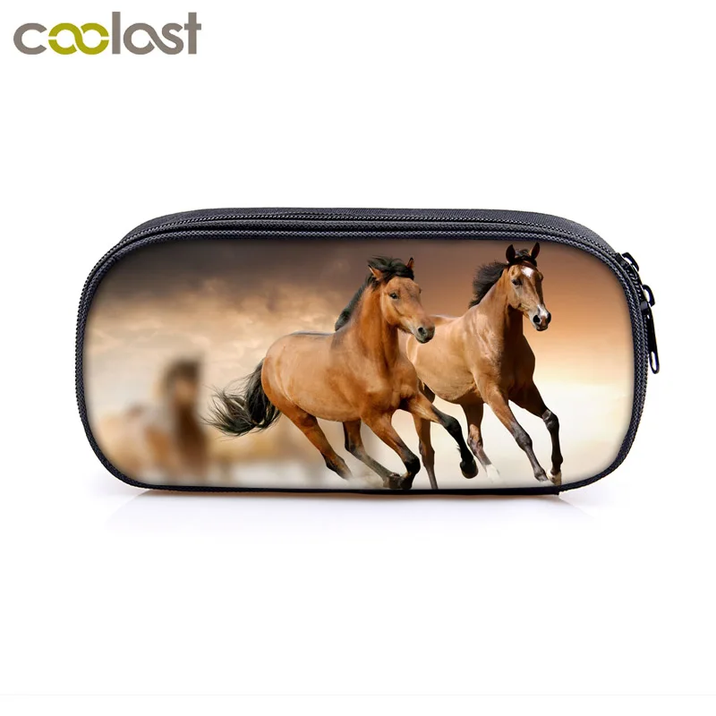 Пенал детский для карандашей и карандашей с принтом лошади, элегантный пенал с рисунком пони, канцелярские принадлежности